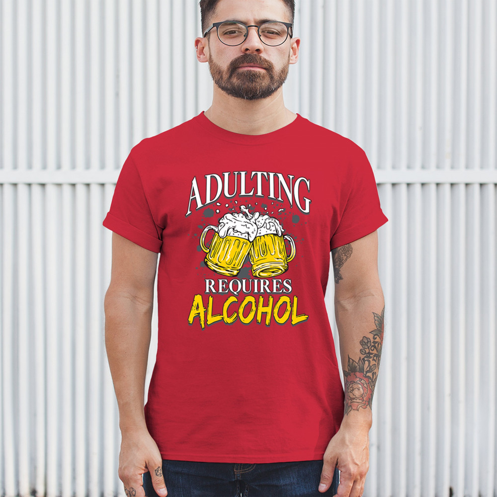 This bold design features two foamy beer mugs clinking together under the phrase “Adulting Requires Alcohol.†Perfect for sarcastic beer lovers, party animals, and anyone navigating grown-up life with booze in hand. Ideal for bars, weekends, or just surviving Mondays with humor and hops.