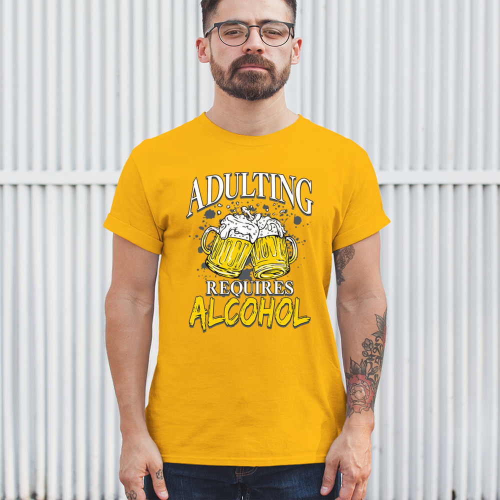 This bold design features two foamy beer mugs clinking together under the phrase “Adulting Requires Alcohol.†Perfect for sarcastic beer lovers, party animals, and anyone navigating grown-up life with booze in hand. Ideal for bars, weekends, or just surviving Mondays with humor and hops.