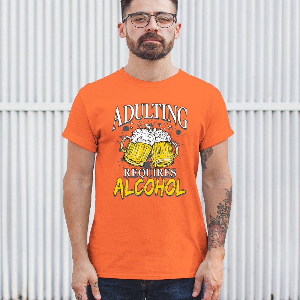 This bold design features two foamy beer mugs clinking together under the phrase “Adulting Requires Alcohol.†Perfect for sarcastic beer lovers, party animals, and anyone navigating grown-up life with booze in hand. Ideal for bars, weekends, or just surviving Mondays with humor and hops.