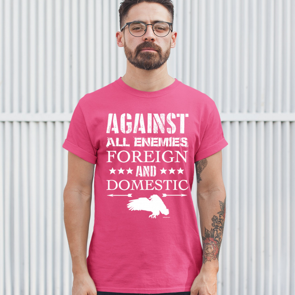 AGAINST ALL ENEMIES FOREIGN AND DOMESTIC t-shirt patriotic veteran men's tee hot pink
