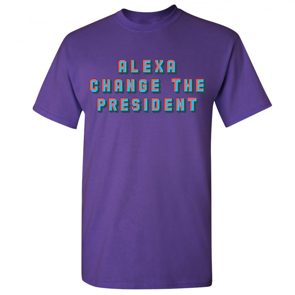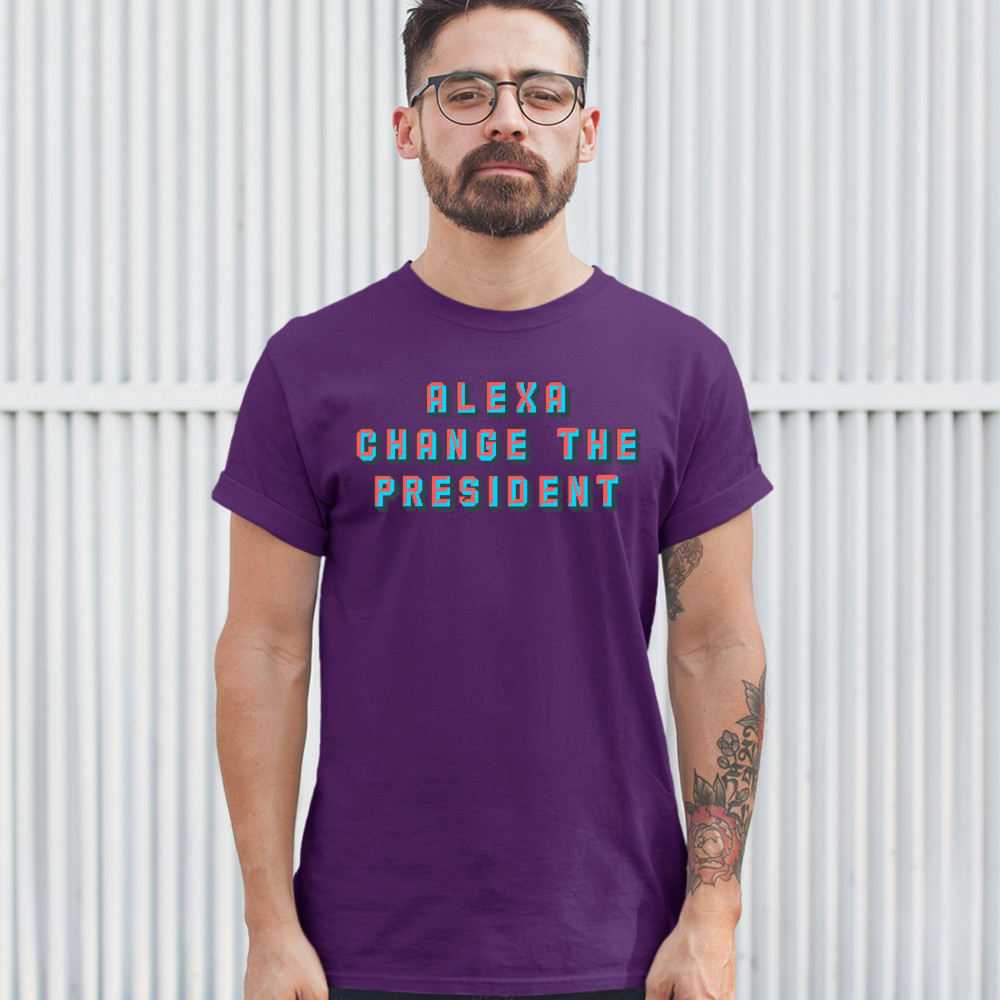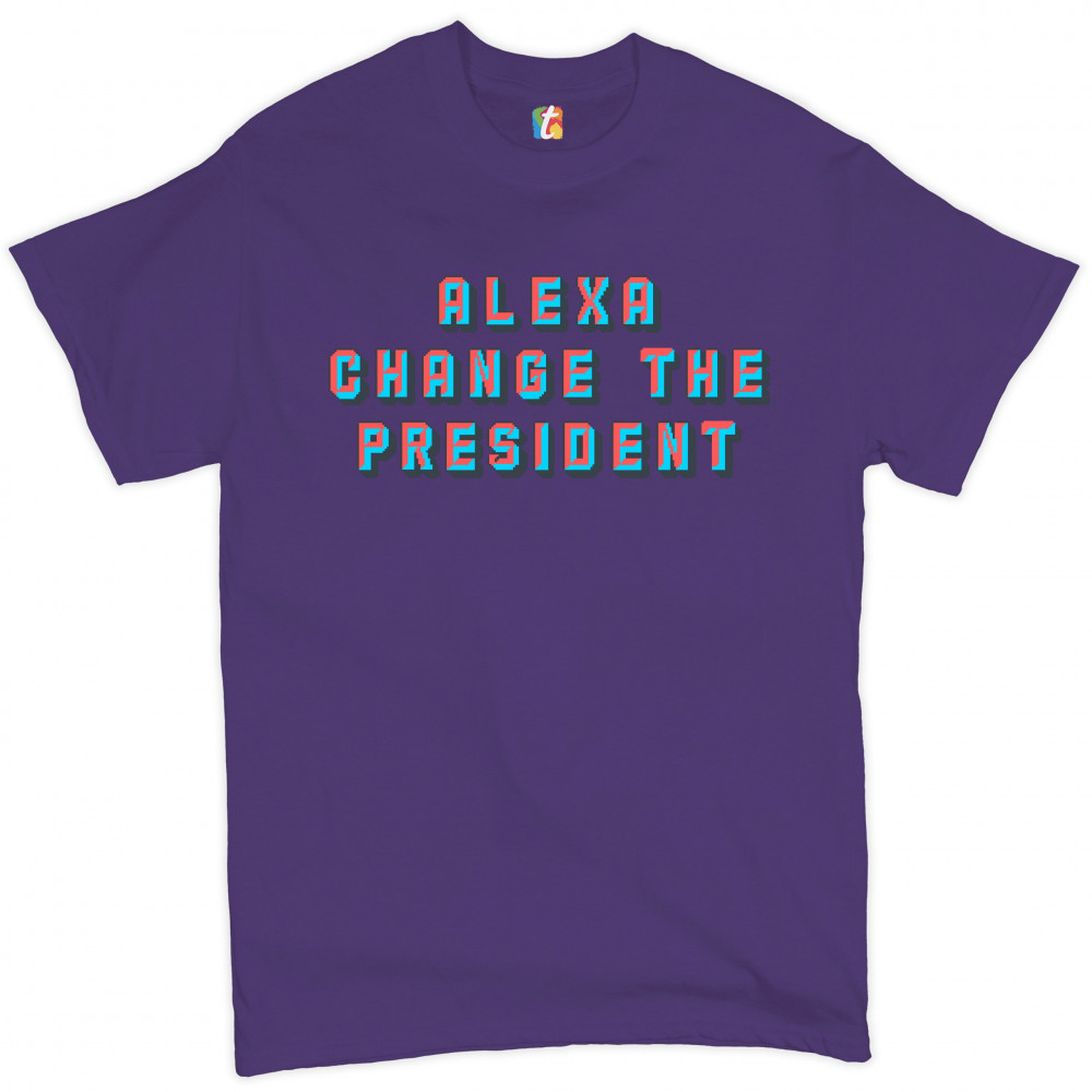 A print saying "Alexa Change the President". A great choice to wear to a Trump rally or give as a gift to a Donald Trump supporter before 2024 presidential elections.