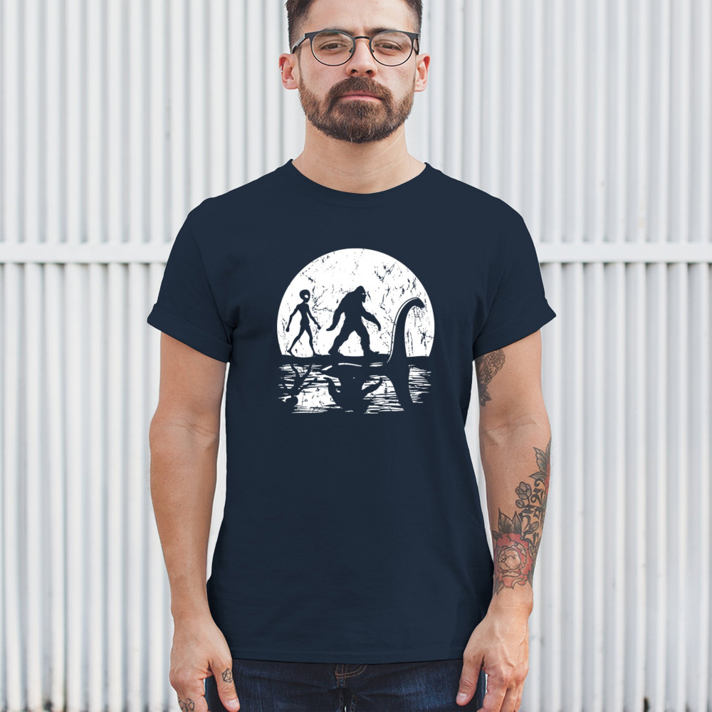 Step into a realm where conspiracy theory meets pop culture with our unique design, blending the intrigue of Area 51 aliens with the mystique of legendary monsters like Big Foot and the primal power of dinosaurs. It's a piece that speaks to the universe's vast mysteries, making for perfect nerd-centric gifts or a vintage addition to your own collection. Embrace the legacy of Godzilla and the whispers of conspiracy with this enthralling design.