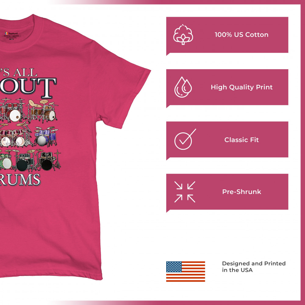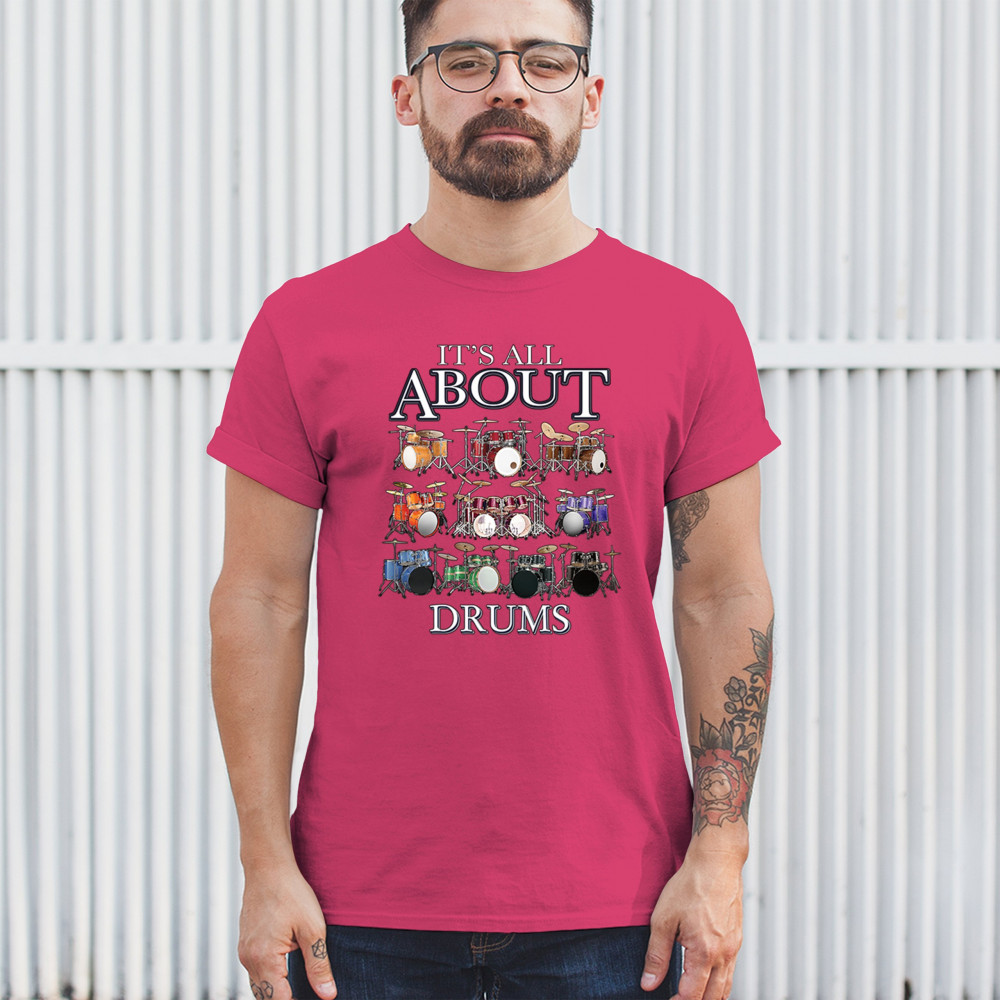 Celebrate the beat with this colorful drum set design that highlights nine complete kits in a bold grid. Whether you’re a beginner or a pro, this is for drummers, percussionists, music students, and rhythm lovers who take their passion seriously. Perfect for stage gigs, jam sessions, or casual everyday wear that says “It’s all about drums.â€