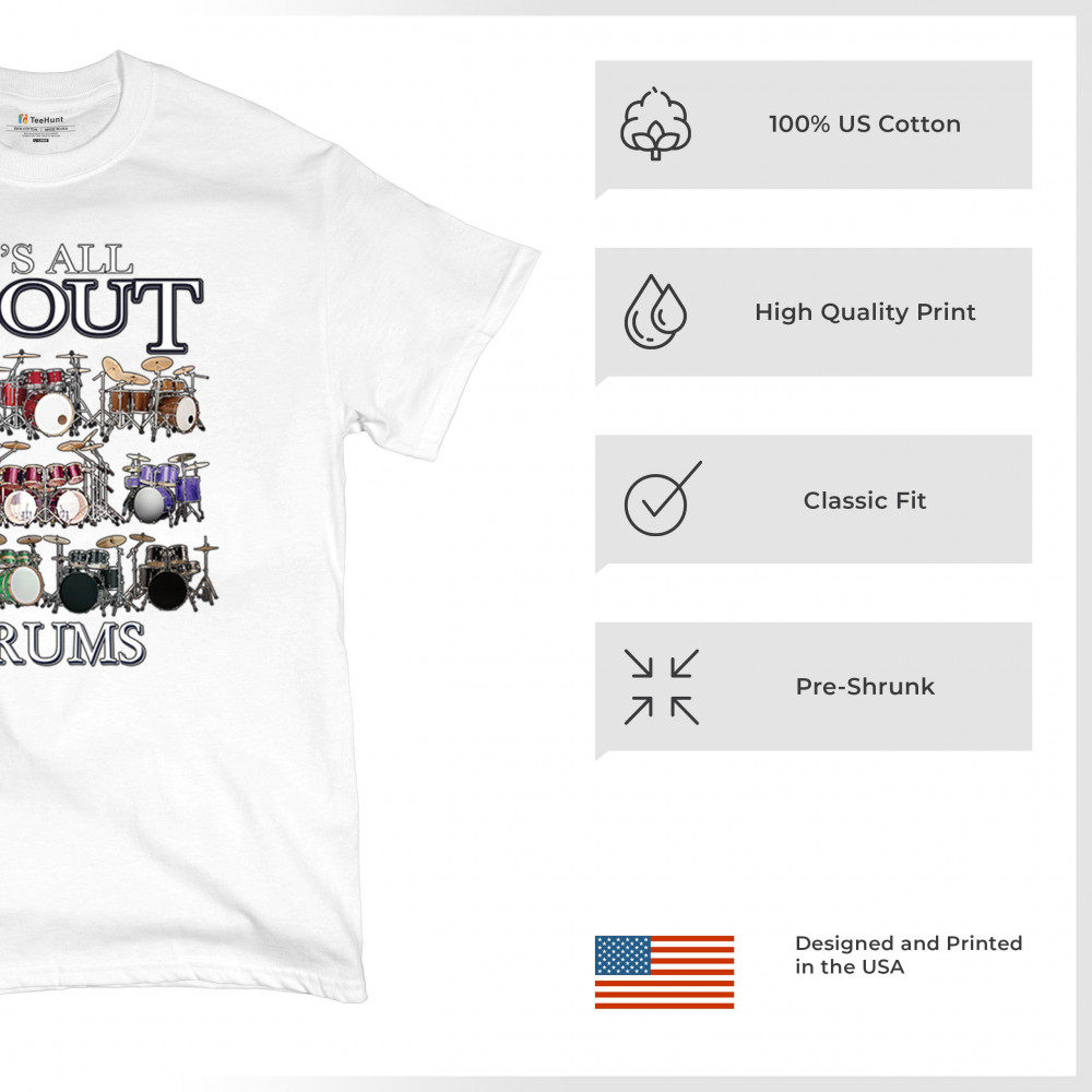 Celebrate the beat with this colorful drum set design that highlights nine complete kits in a bold grid. Whether you’re a beginner or a pro, this is for drummers, percussionists, music students, and rhythm lovers who take their passion seriously. Perfect for stage gigs, jam sessions, or casual everyday wear that says “It’s all about drums.â€