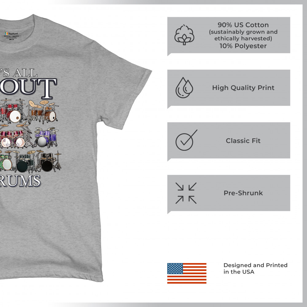 Celebrate the beat with this colorful drum set design that highlights nine complete kits in a bold grid. Whether you’re a beginner or a pro, this is for drummers, percussionists, music students, and rhythm lovers who take their passion seriously. Perfect for stage gigs, jam sessions, or casual everyday wear that says “It’s all about drums.â€