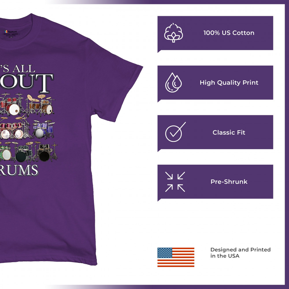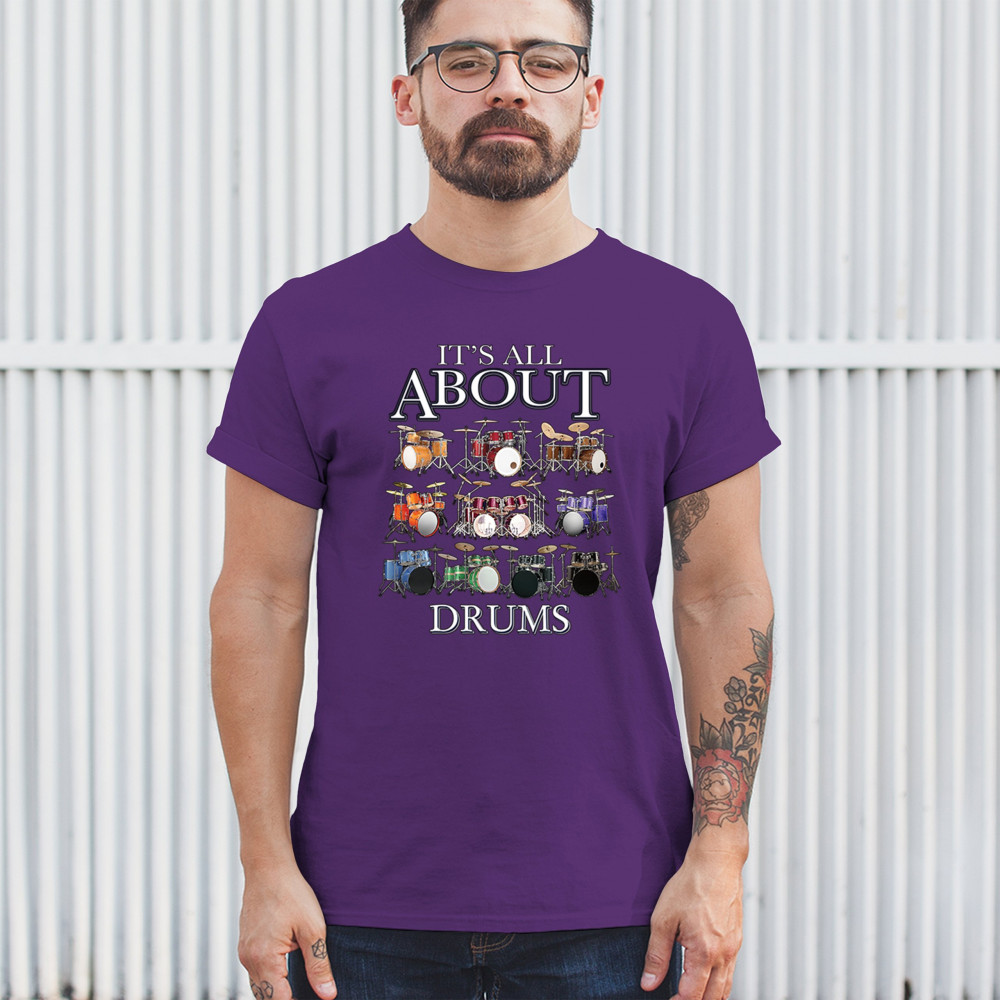 Celebrate the beat with this colorful drum set design that highlights nine complete kits in a bold grid. Whether you’re a beginner or a pro, this is for drummers, percussionists, music students, and rhythm lovers who take their passion seriously. Perfect for stage gigs, jam sessions, or casual everyday wear that says “It’s all about drums.â€
