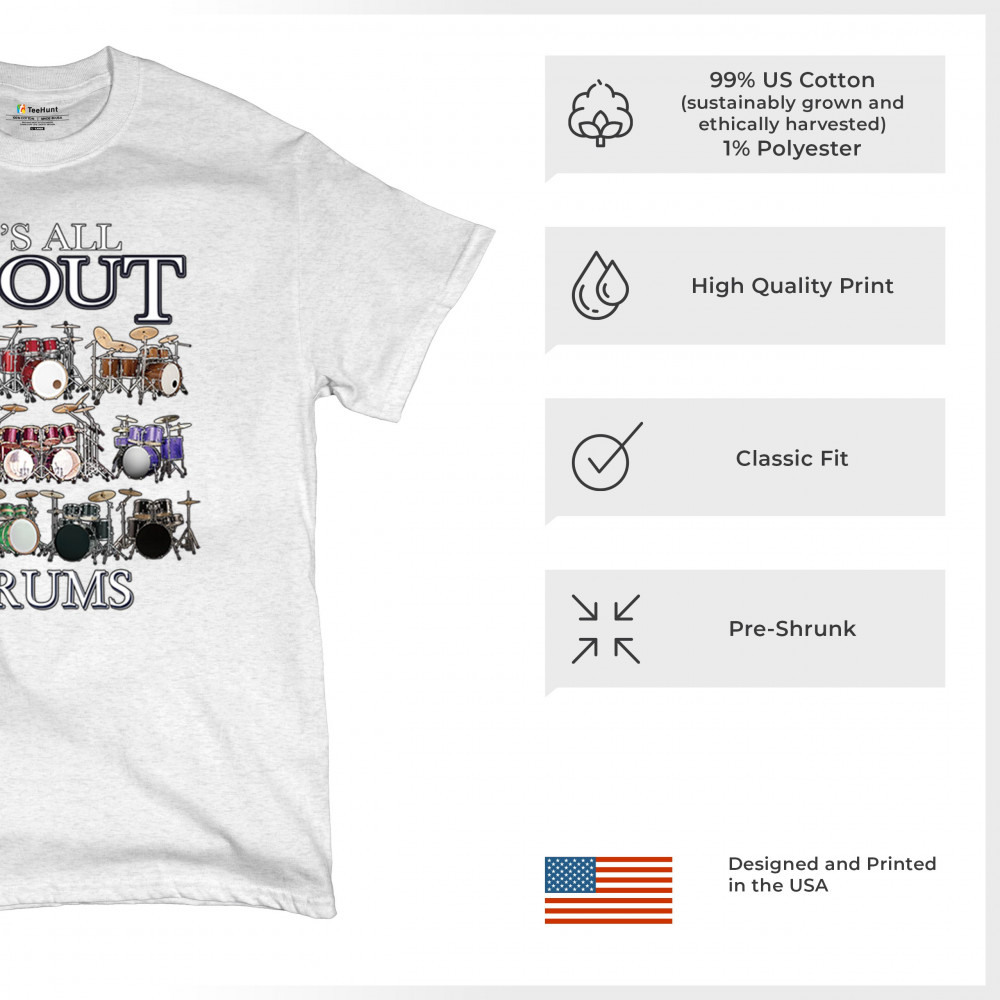 Celebrate the beat with this colorful drum set design that highlights nine complete kits in a bold grid. Whether you’re a beginner or a pro, this is for drummers, percussionists, music students, and rhythm lovers who take their passion seriously. Perfect for stage gigs, jam sessions, or casual everyday wear that says “It’s all about drums.â€