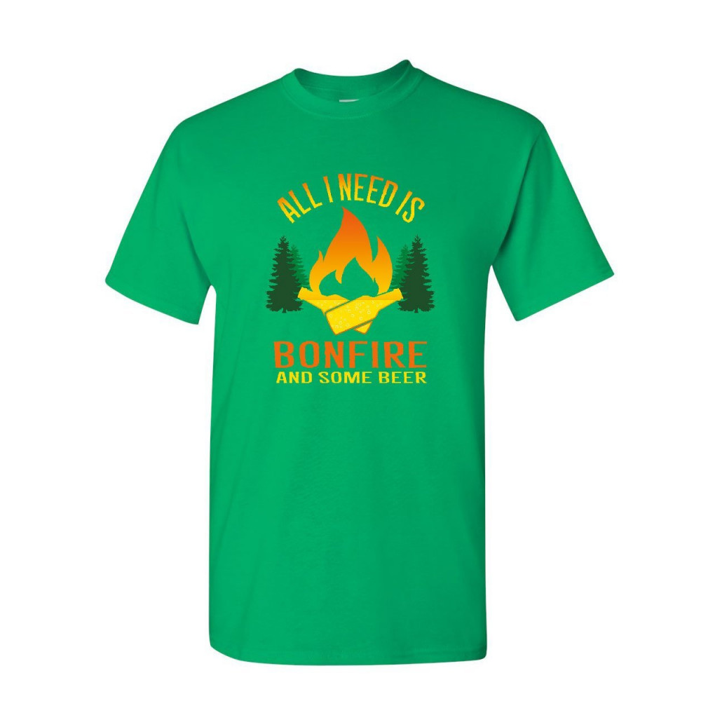ALL I NEED IS BONFIRE & SOME BEER t-shirt funny camping drinking mens tee shirt green