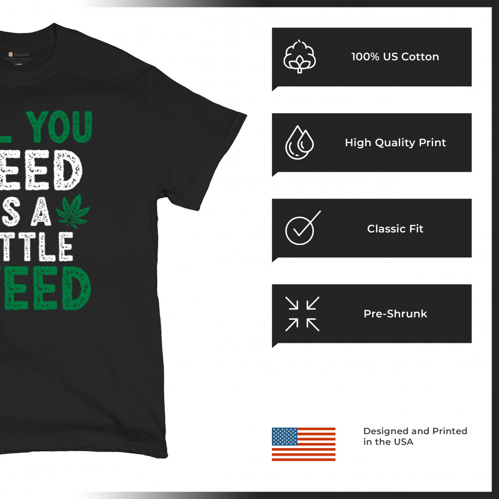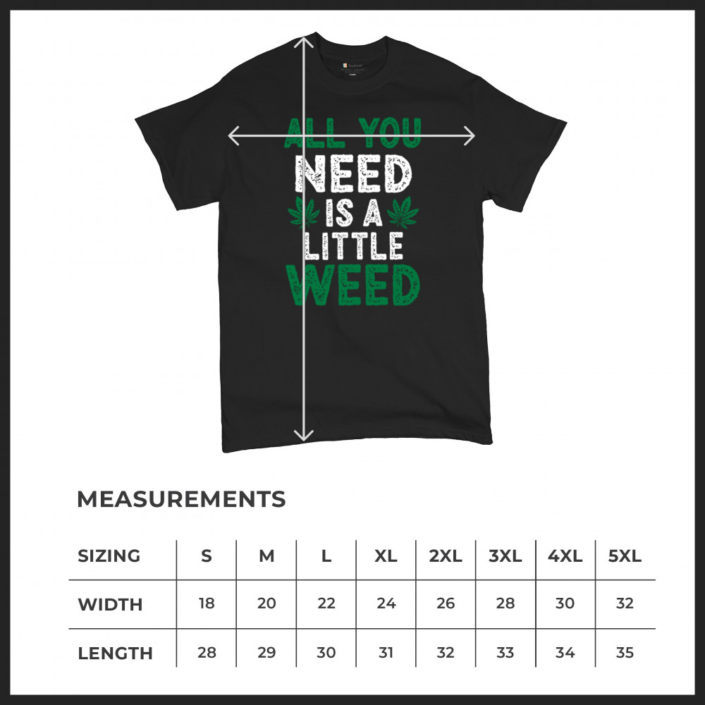 Celebrate your love for cannabis with the "All You Need is a Little Weed" design. Perfect for relaxing and enjoying the green herb.