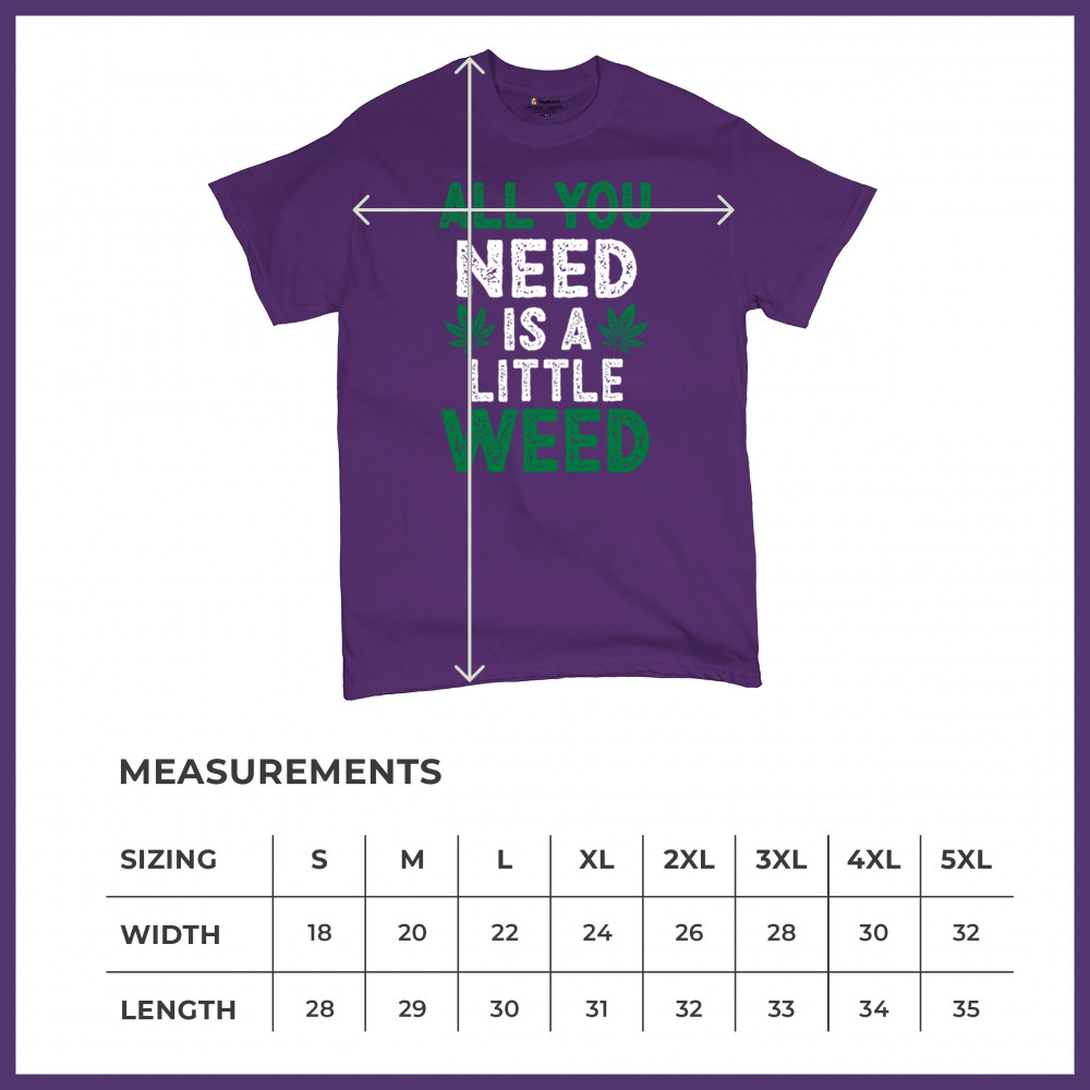 Our "All You Need is a Little Weed" design is perfect for anyone who embraces the cannabis lifestyle. With bold, distressed lettering and vibrant cannabis leaves, this design is both eye-catching and stylish. Ideal for casual outings, festivals, or relaxed days at home, it's a must-have for those who love to relax with Mary Jane. Made with humor and love for the green herb, it’s a great gift for friends or yourself. Embrace the chill vibes and let everyone know what you're all about.