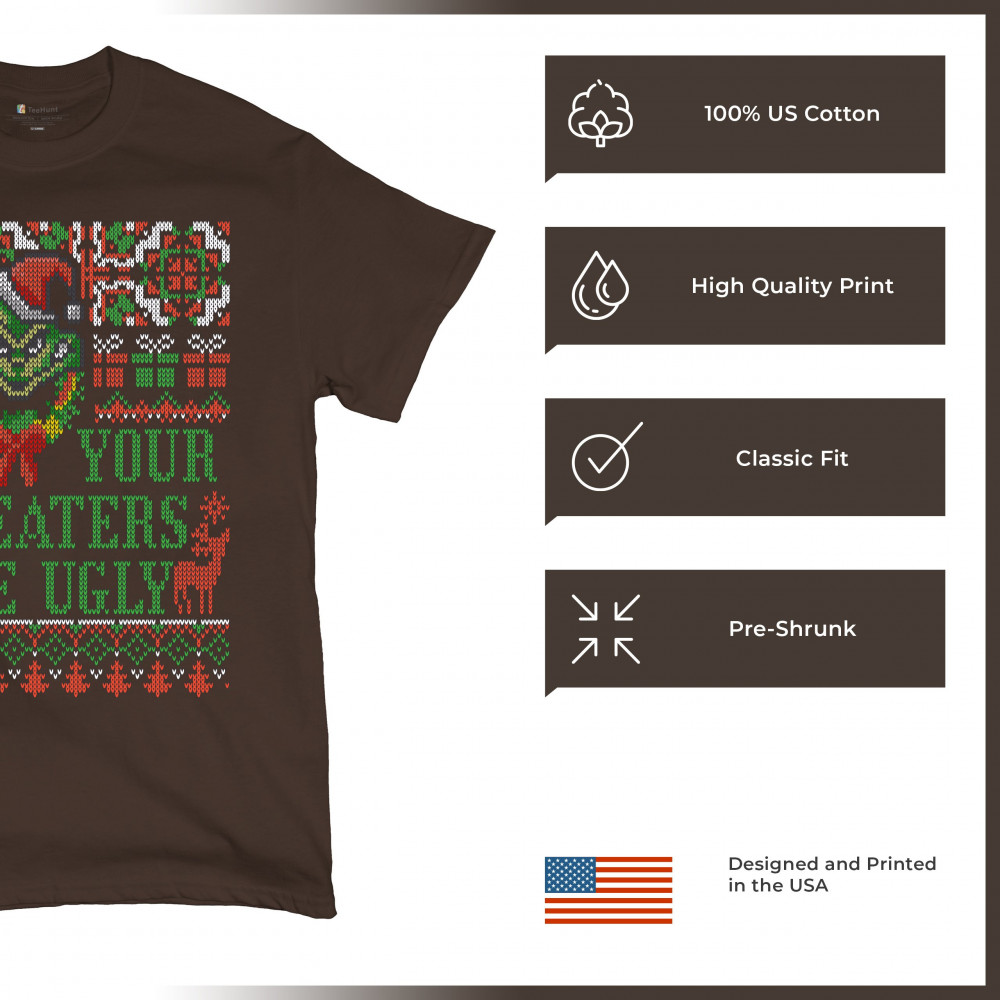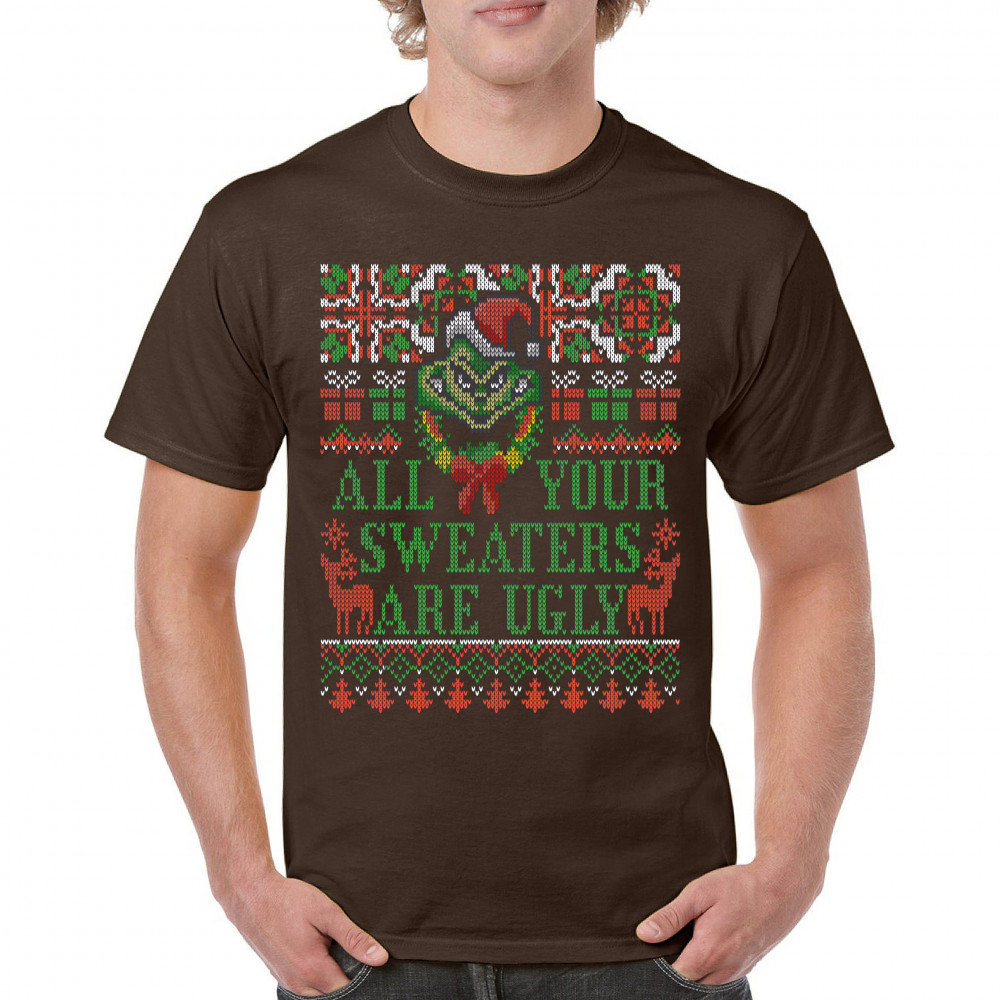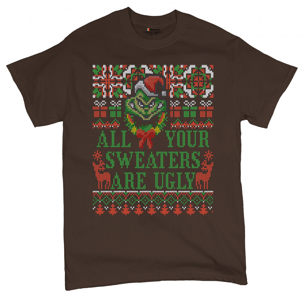 ALL YOUR SWEATERS ARE UGLY t-shirt funny merry christmas rudolph men's tee brown