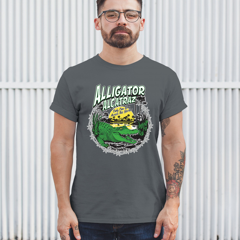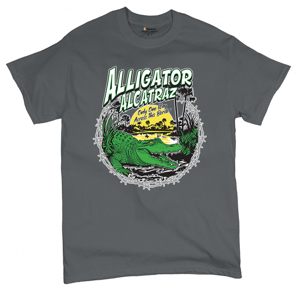 Alligator Alcatraz design with border security message. For conservative, Republican, and patriotic Americans who stand for America First values.