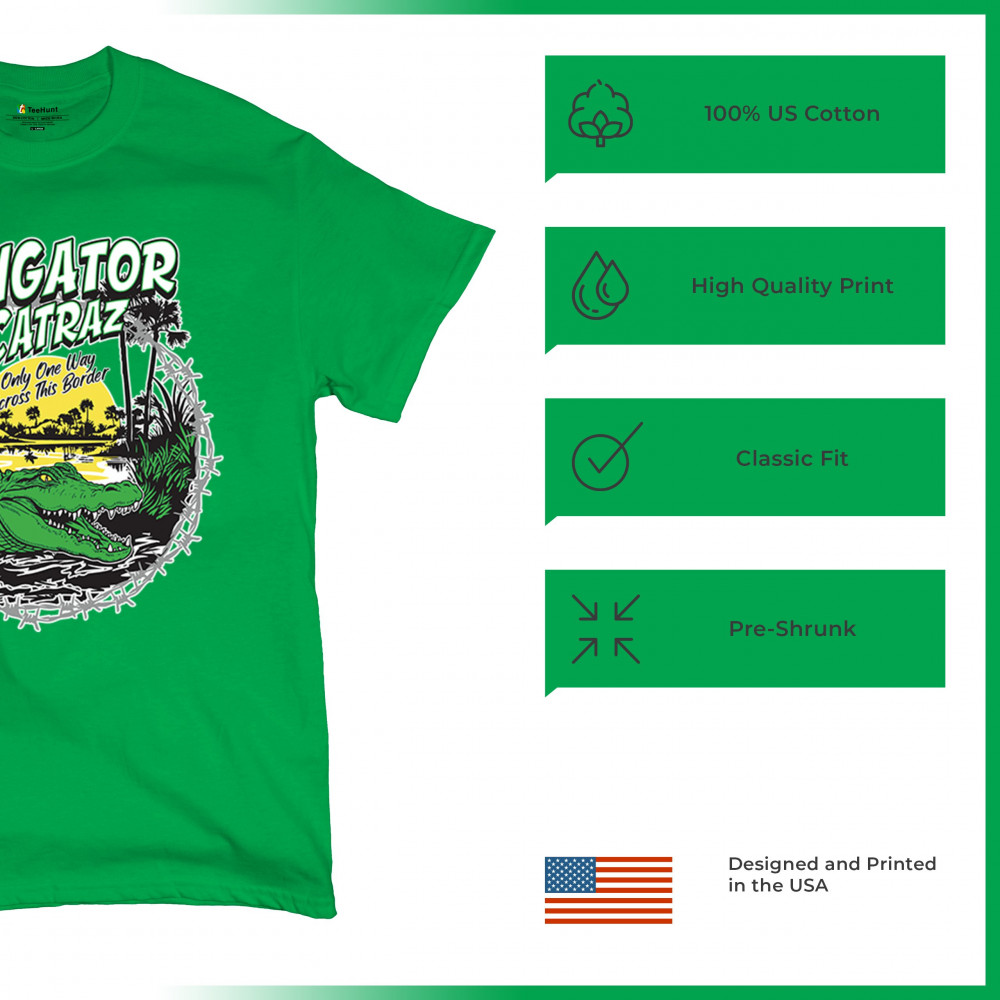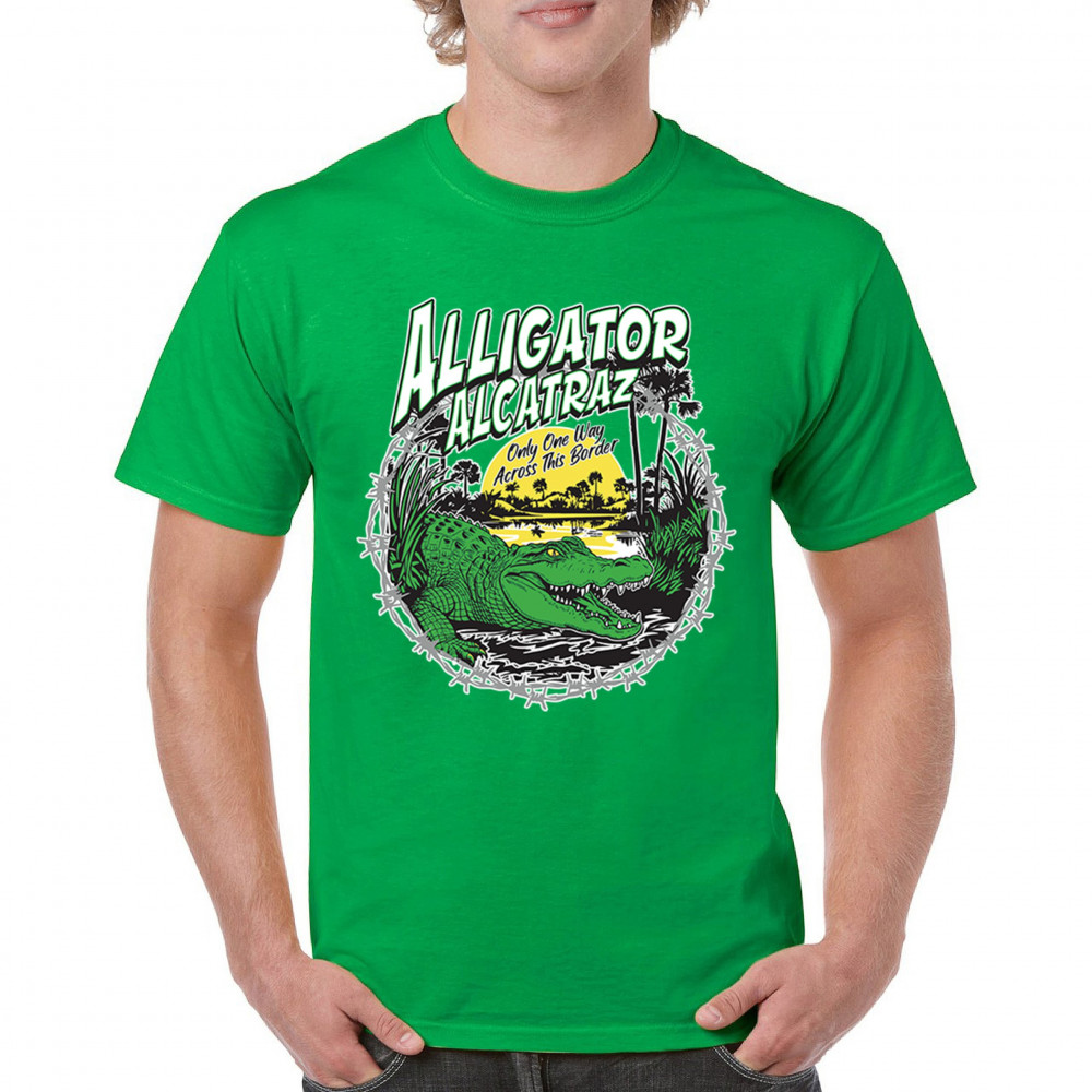 Alligator Alcatraz design with border security message. For conservative, Republican, and patriotic Americans who stand for America First values.