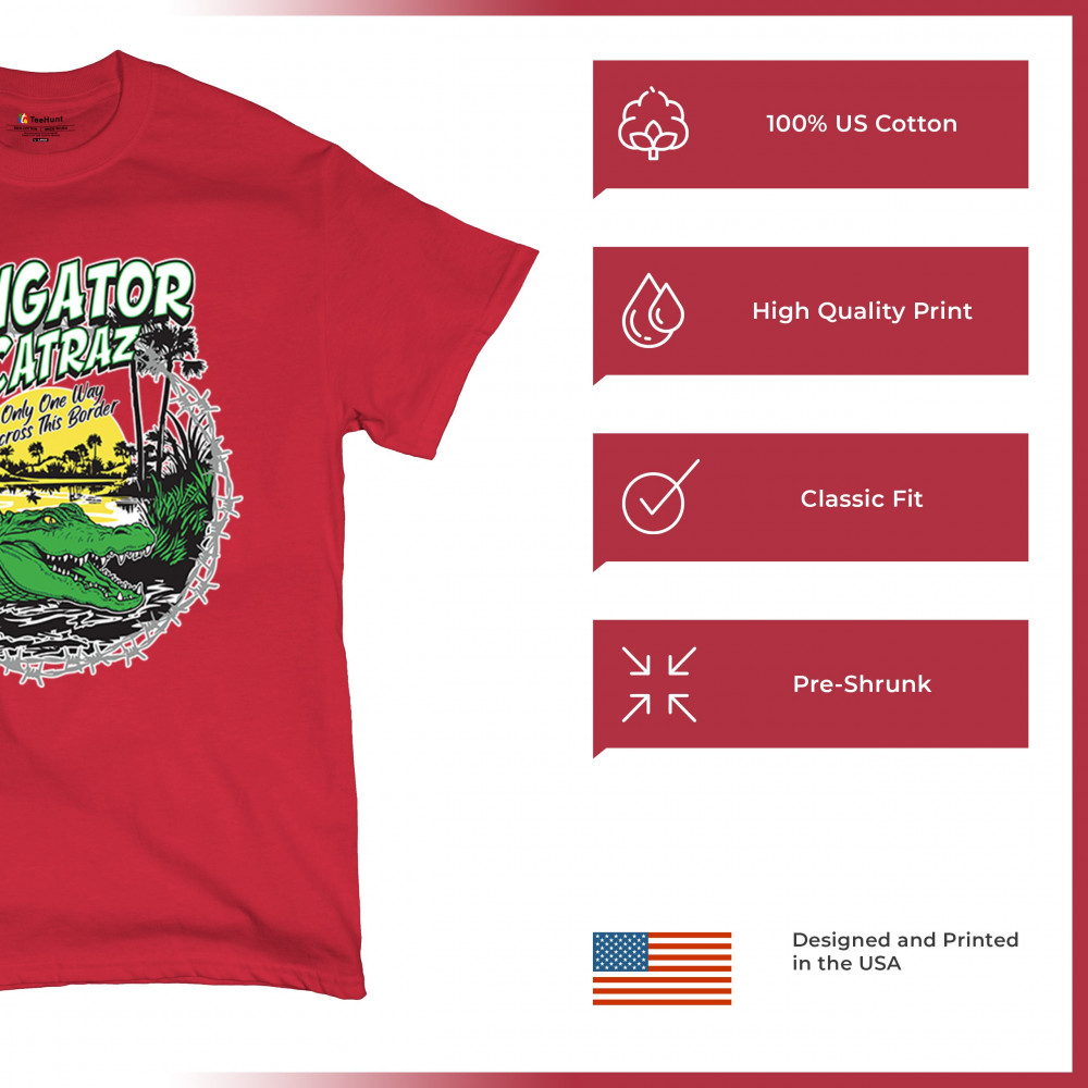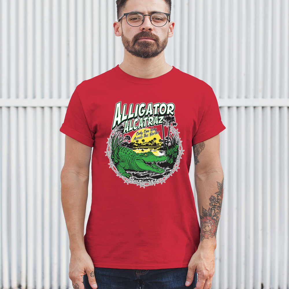 This Alligator Alcatraz Florida print brings attitude and strong beliefs into one powerful design. Featuring a gator and barbed wire with a tough message, it’s made for proud conservatives, Republican supporters, and patriots. Wear it loud if you believe in USA pride and secure borders.