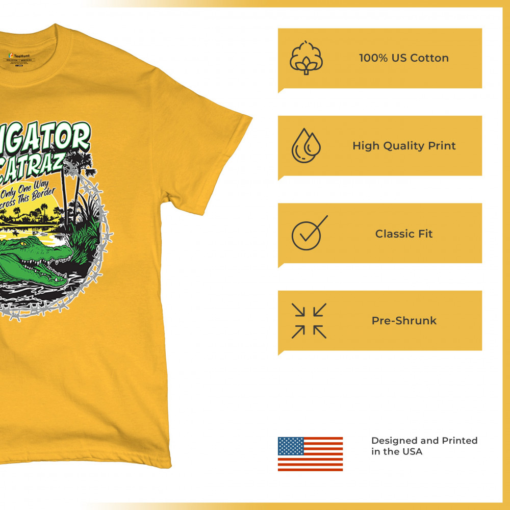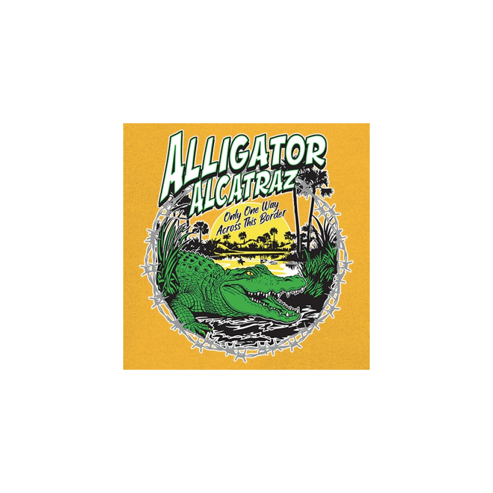 Alligator Alcatraz design with border security message. For conservative, Republican, and patriotic Americans who stand for America First values.