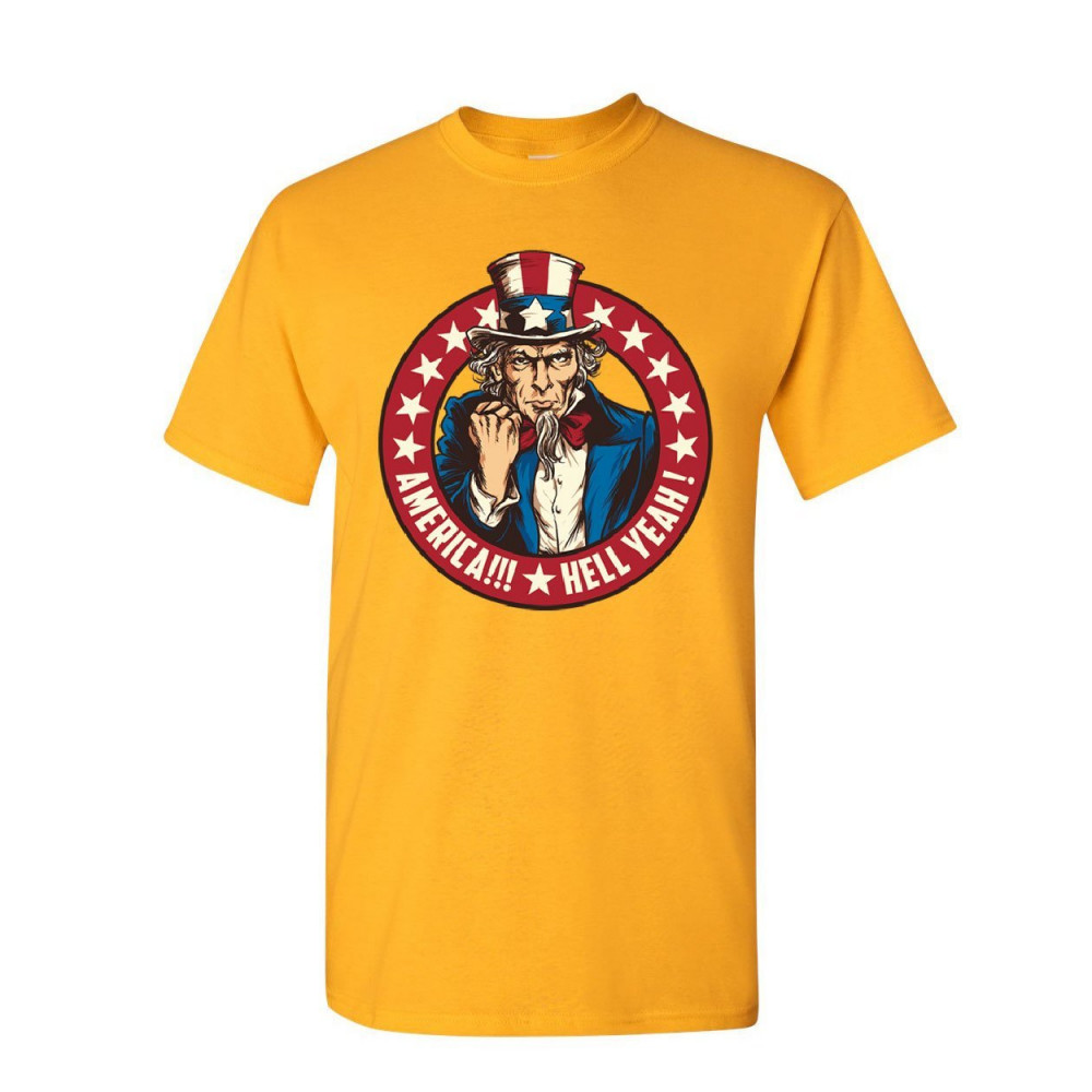 AMERICA HELL YEAH t-shirt uncle sam patriotic stars and stripes mens tee shirt yellow