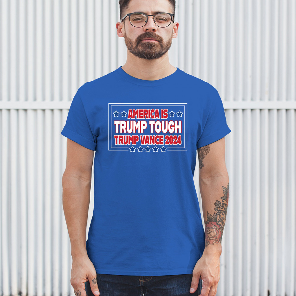 Support Trump and Vance in 2024 with this bold, patriotic design, perfect for rallies and everyday wear. Stand for America First principles and conservative values.