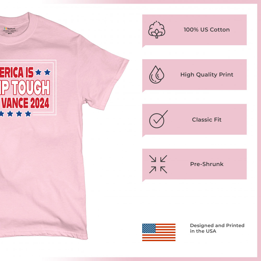 Support Trump and Vance in 2024 with this bold, patriotic design, perfect for rallies and everyday wear. Stand for America First principles and conservative values.