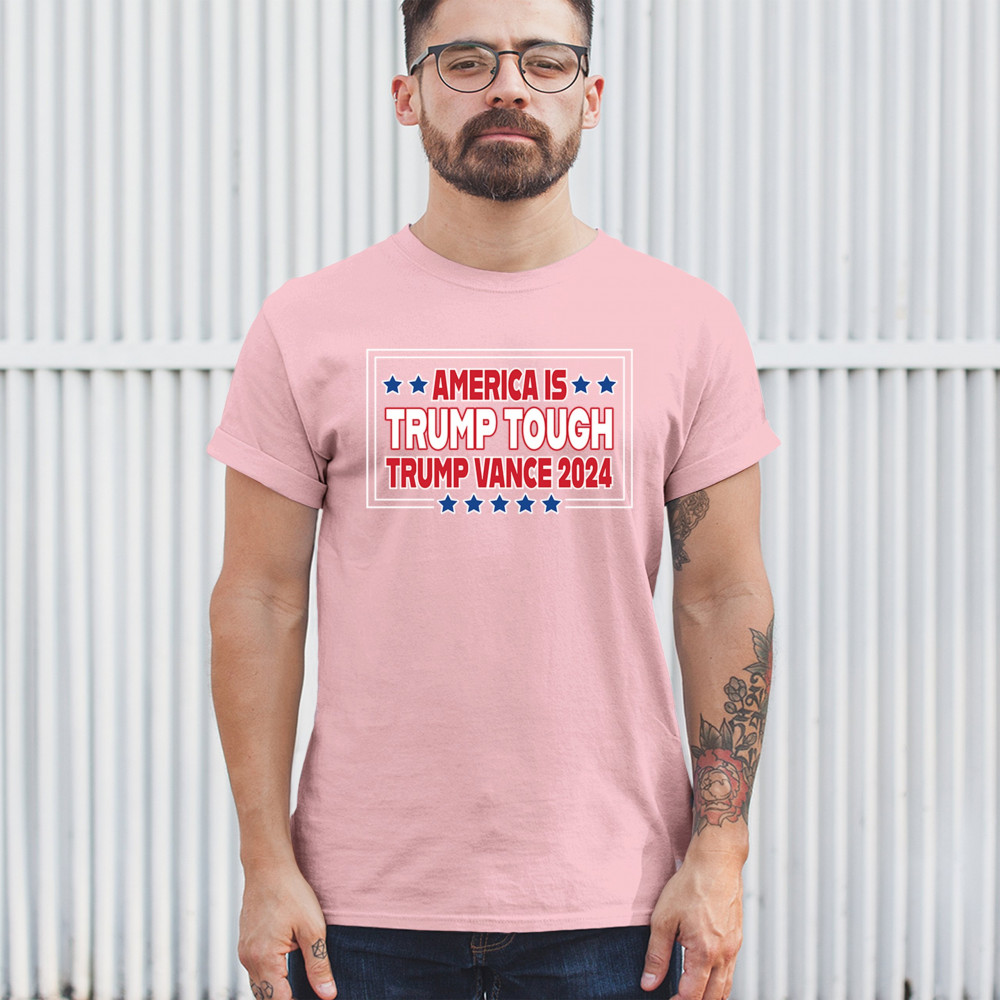 Stand out with this powerful Trump and Vance 2024 design, symbolizing unwavering conservative values and America First principles. With its bold graphics and patriotic elements, this design is perfect for any supporter who wants to show their commitment to the cause. Whether at rallies or everyday activities, wear this design proudly and let everyone know where you stand in the fight for America's future.