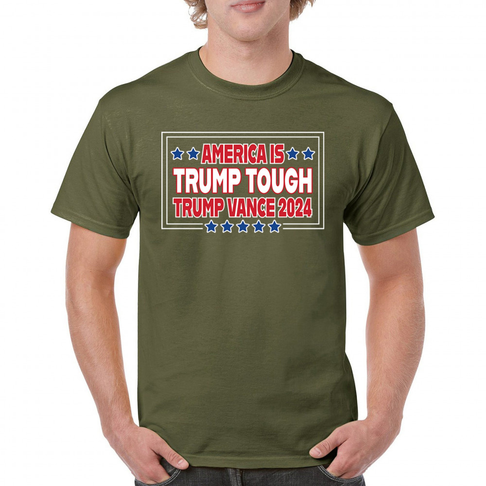 Support Trump and Vance in 2024 with this bold, patriotic design, perfect for rallies and everyday wear. Stand for America First principles and conservative values.