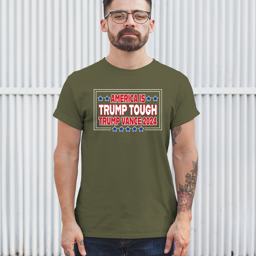 Stand out with this powerful Trump and Vance 2024 design, symbolizing unwavering conservative values and America First principles. With its bold graphics and patriotic elements, this design is perfect for any supporter who wants to show their commitment to the cause. Whether at rallies or everyday activities, wear this design proudly and let everyone know where you stand in the fight for America's future.
