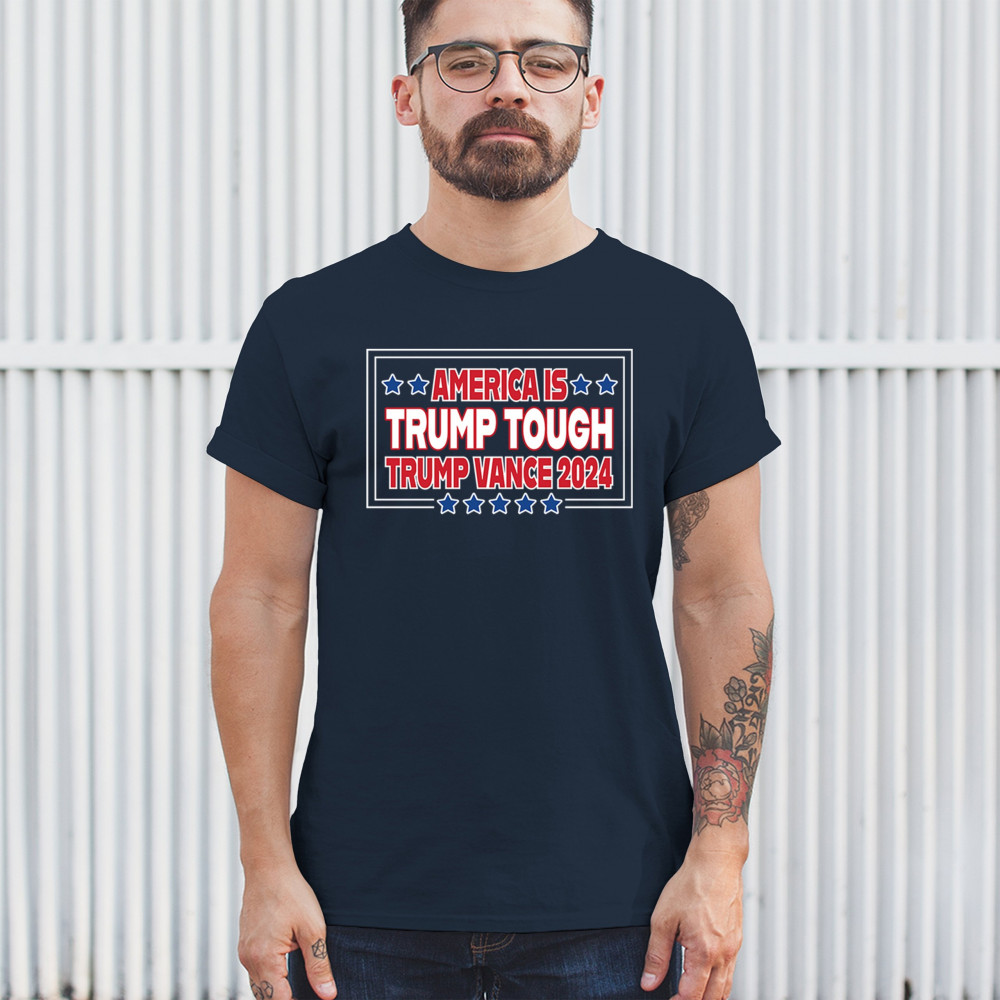 Support Trump and Vance in 2024 with this bold, patriotic design, perfect for rallies and everyday wear. Stand for America First principles and conservative values.