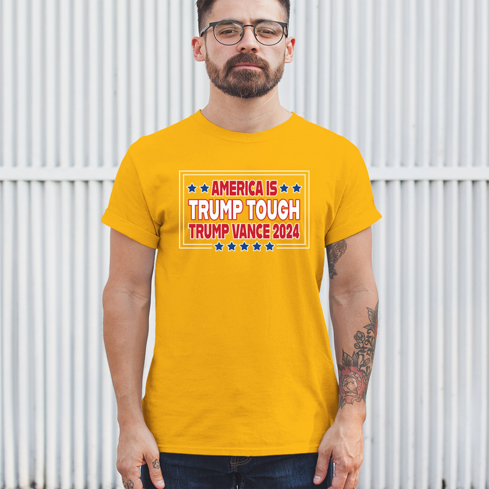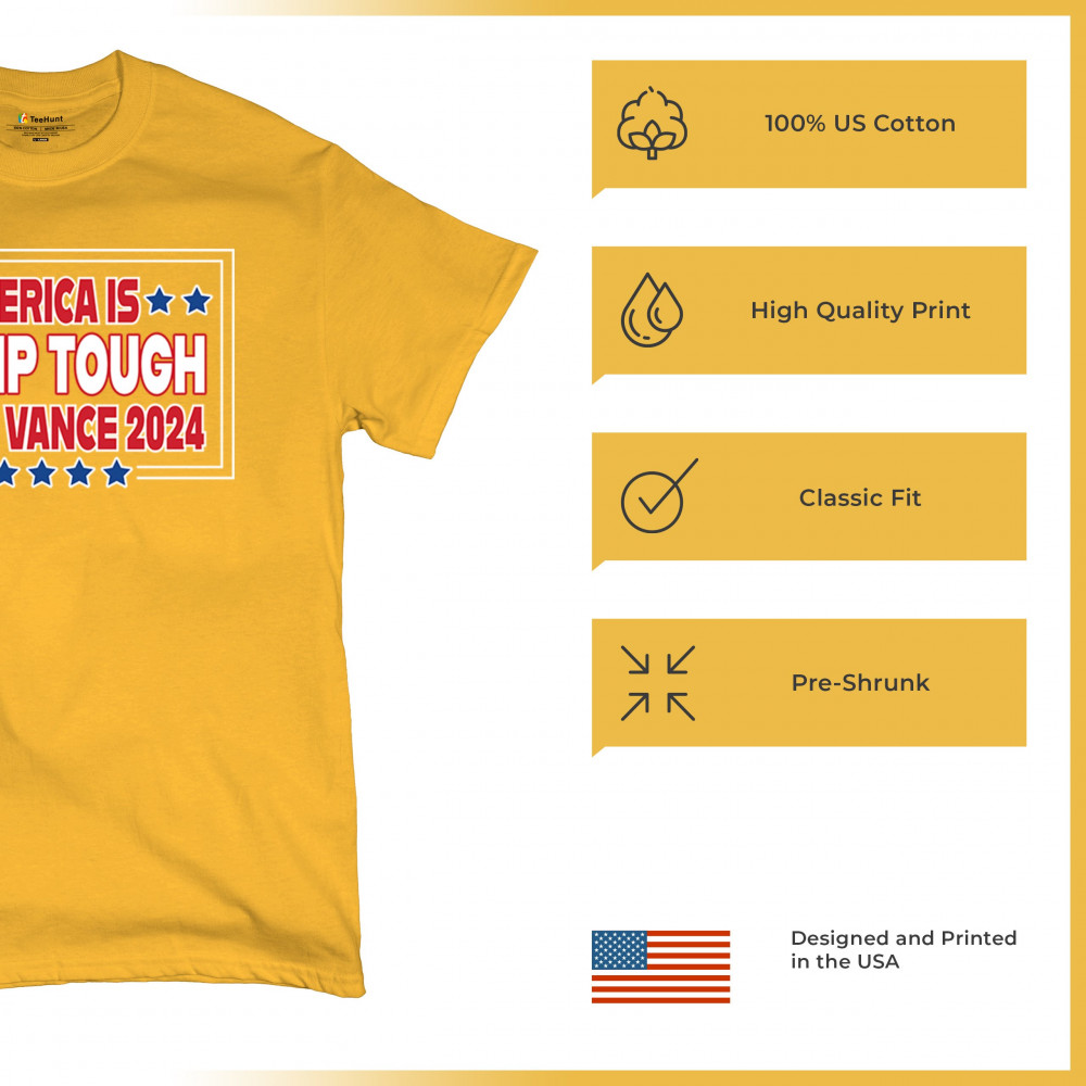Support Trump and Vance in 2024 with this bold, patriotic design, perfect for rallies and everyday wear. Stand for America First principles and conservative values.