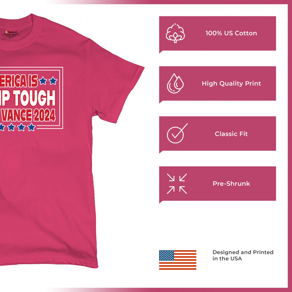Support Trump and Vance in 2024 with this bold, patriotic design, perfect for rallies and everyday wear. Stand for America First principles and conservative values.