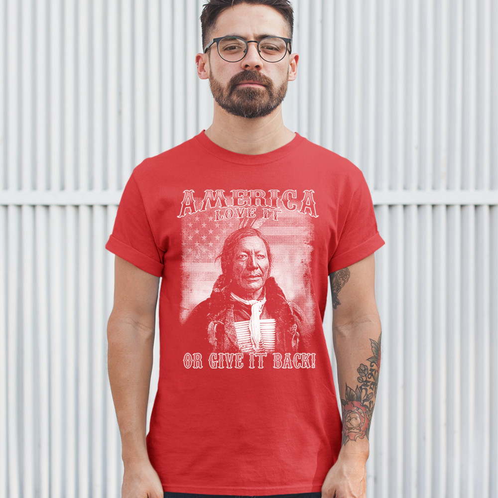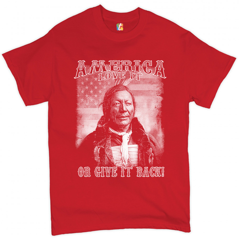 AMERICA LOVE IT OR GIVE IT BACK t-shirt native american chief men's tee red