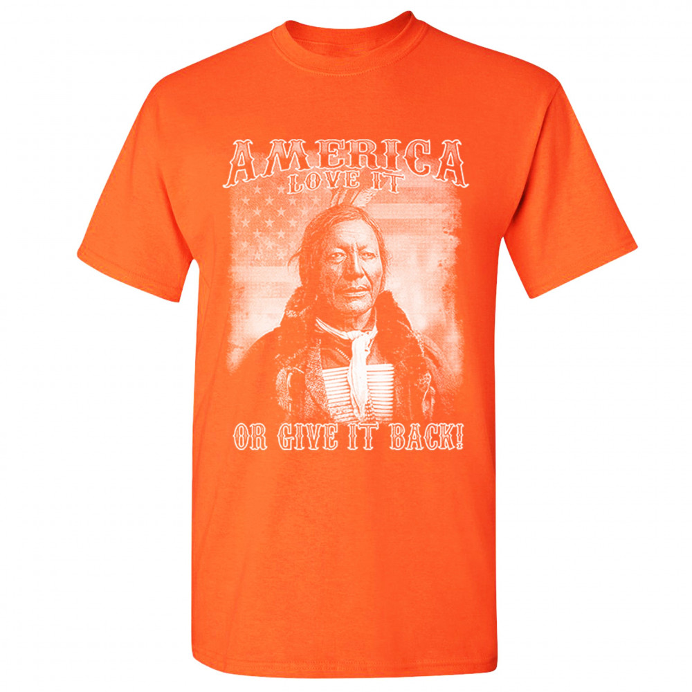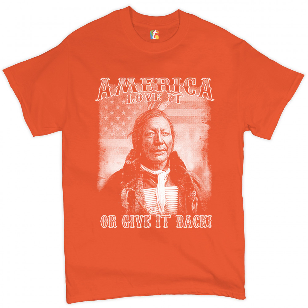 AMERICA LOVE IT OR GIVE IT BACK t-shirt native american chief men's tee orange