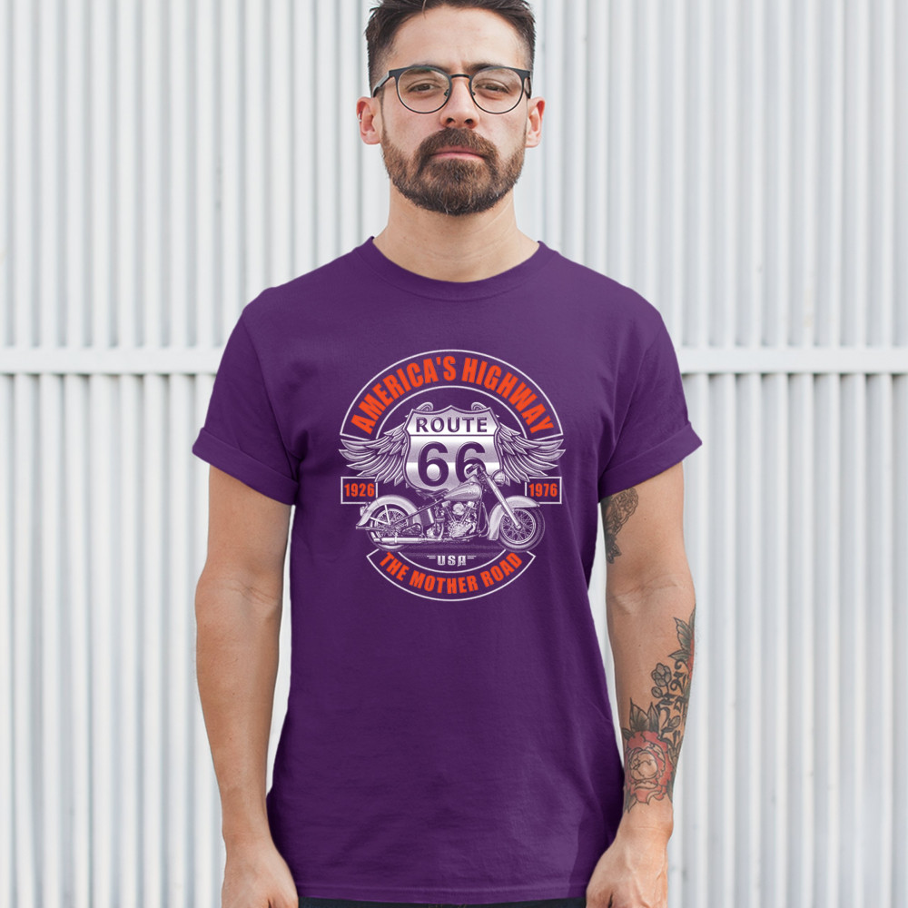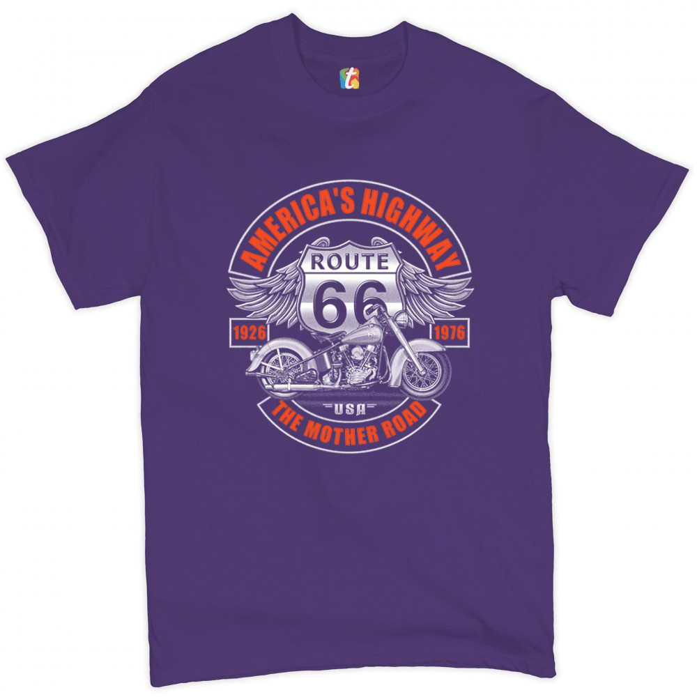 AMERICA'S HIGHWAY THE MOTHER ROAD t-shirt route 66 biker motorcycle men's tee purple