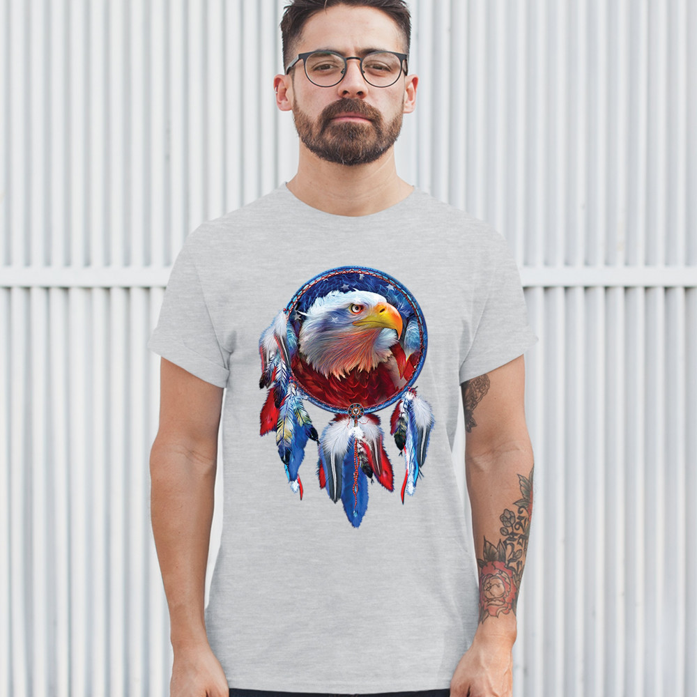 AMERICAN BALD EAGLE DREAMCATCHER t-shirt native american patriotic men's tee ash gray