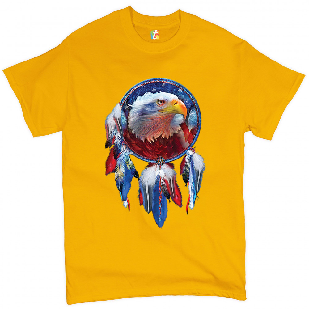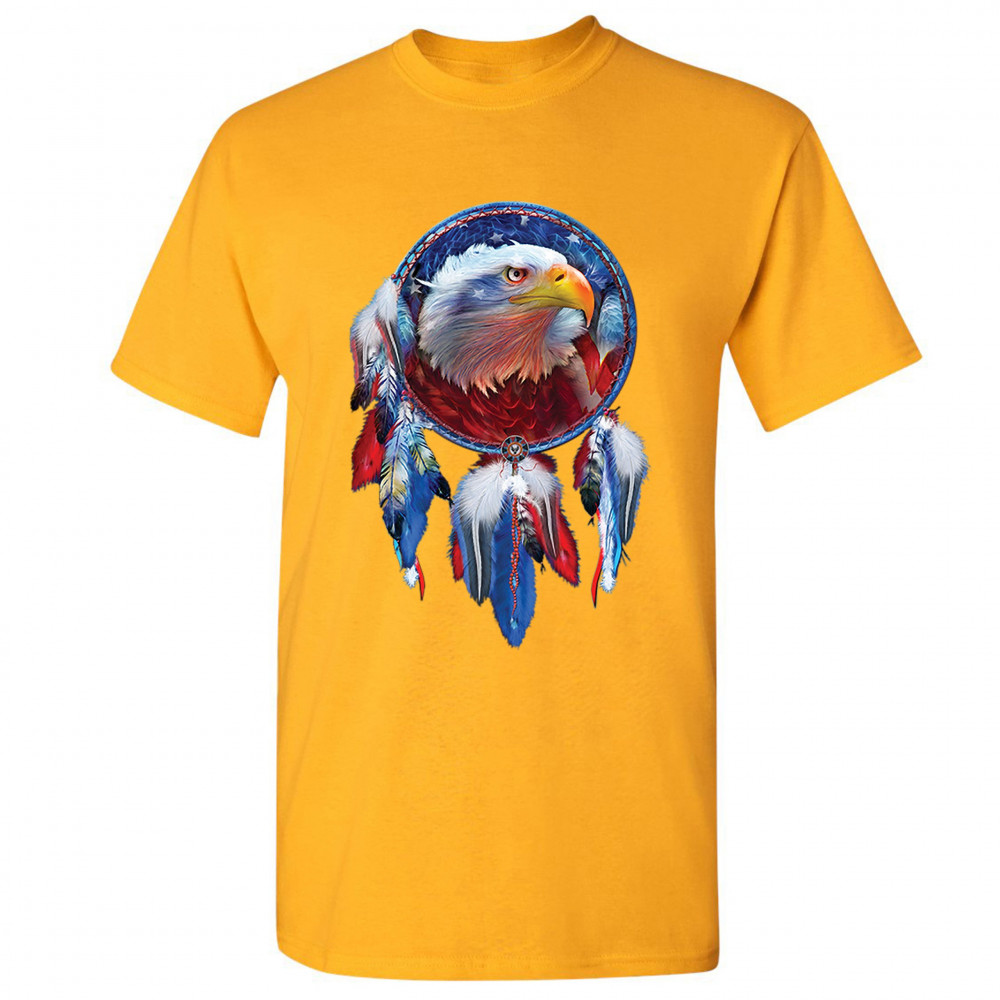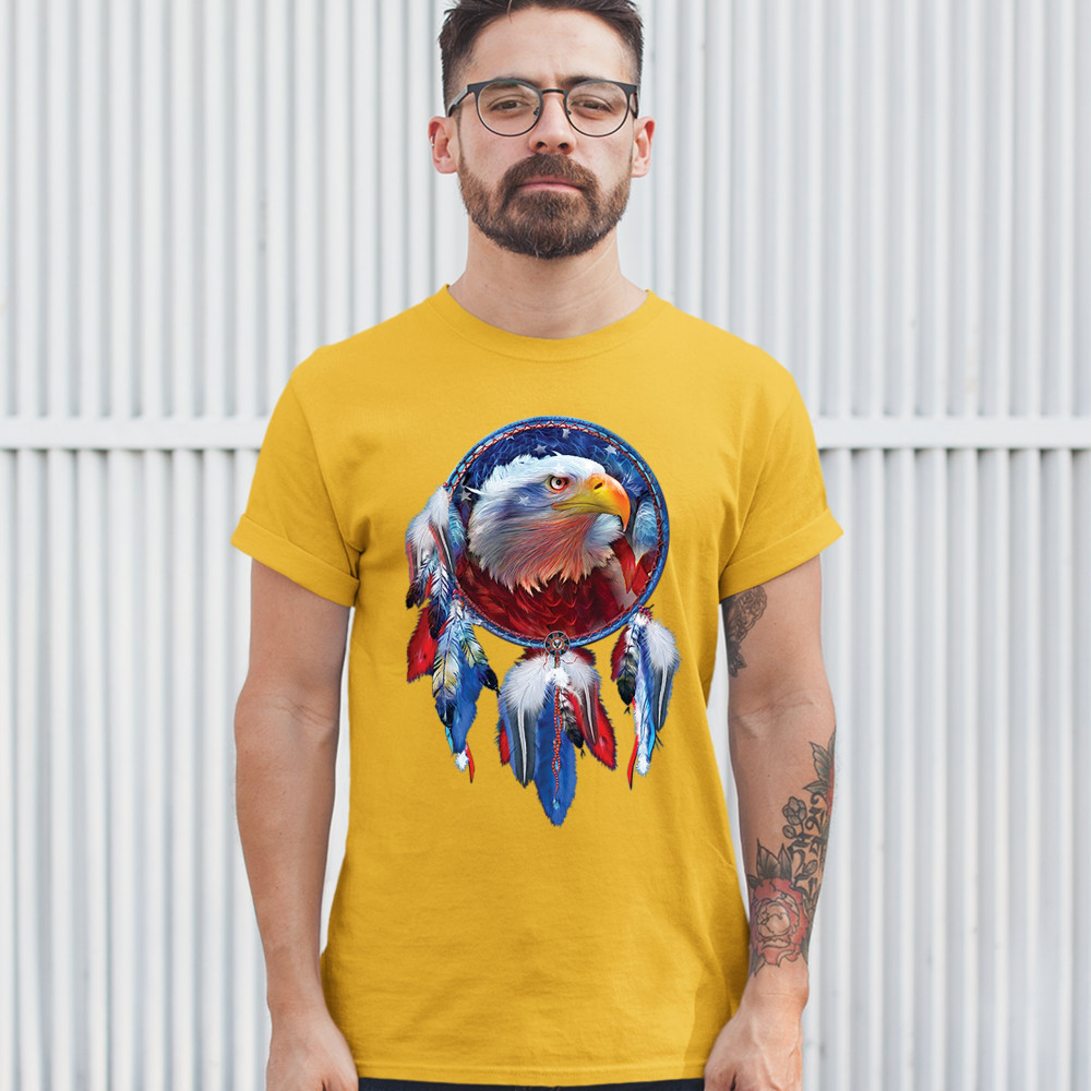 AMERICAN BALD EAGLE DREAMCATCHER t-shirt native american patriotic men's tee yellow