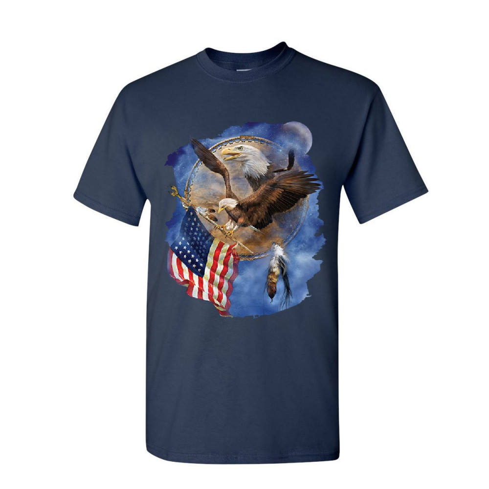 BALD EAGLE DREAM CATCHER american bald eagle holding a flag t-shirt patriot dreamcatcher mens tee shirt navy blue