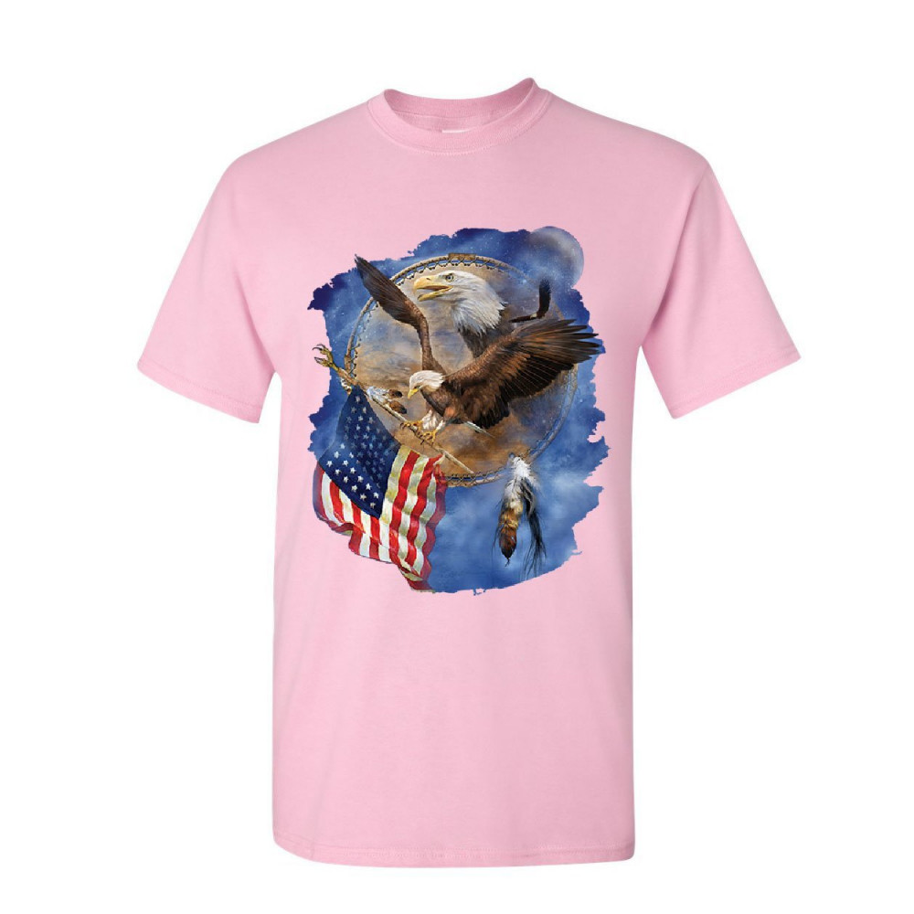 BALD EAGLE DREAM CATCHER american bald eagle holding a flag t-shirt patriot dreamcatcher mens tee shirt light pink