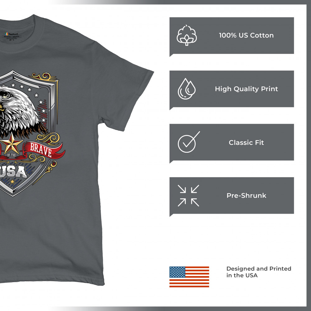 Honor American spirit with this patriotic eagle shield design shirt. Featuring a bold bald eagle emblem, stars and stripes shield, and red white blue accents, it’s perfect for Veteran’s Day, 4th of July, and military pride. A true American pride shirt for those who live by “home of the brave, land of the free.â€
