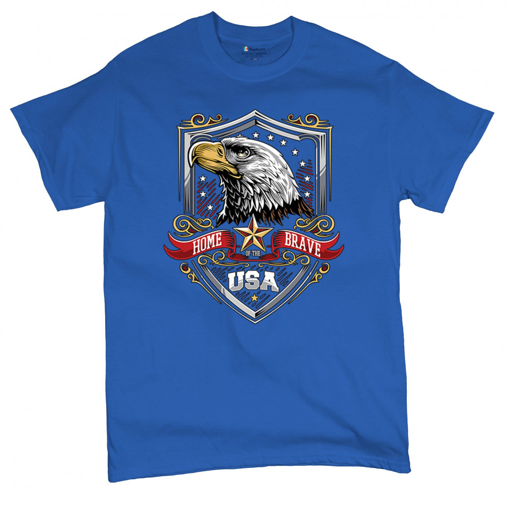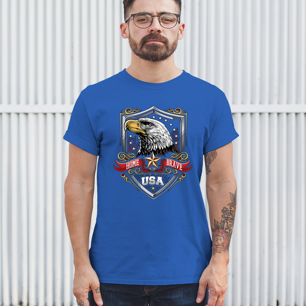 Honor American spirit with this patriotic eagle shield design shirt. Featuring a bold bald eagle emblem, stars and stripes shield, and red white blue accents, it’s perfect for Veteran’s Day, 4th of July, and military pride. A true American pride shirt for those who live by “home of the brave, land of the free.â€