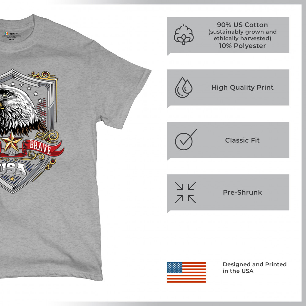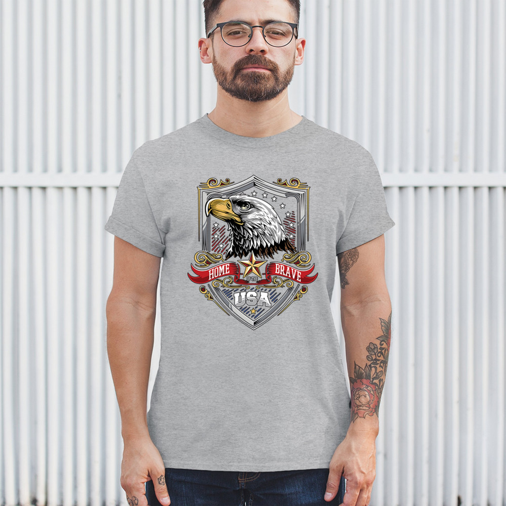 Honor American spirit with this patriotic eagle shield design shirt. Featuring a bold bald eagle emblem, stars and stripes shield, and red white blue accents, it’s perfect for Veteran’s Day, 4th of July, and military pride. A true American pride shirt for those who live by “home of the brave, land of the free.â€