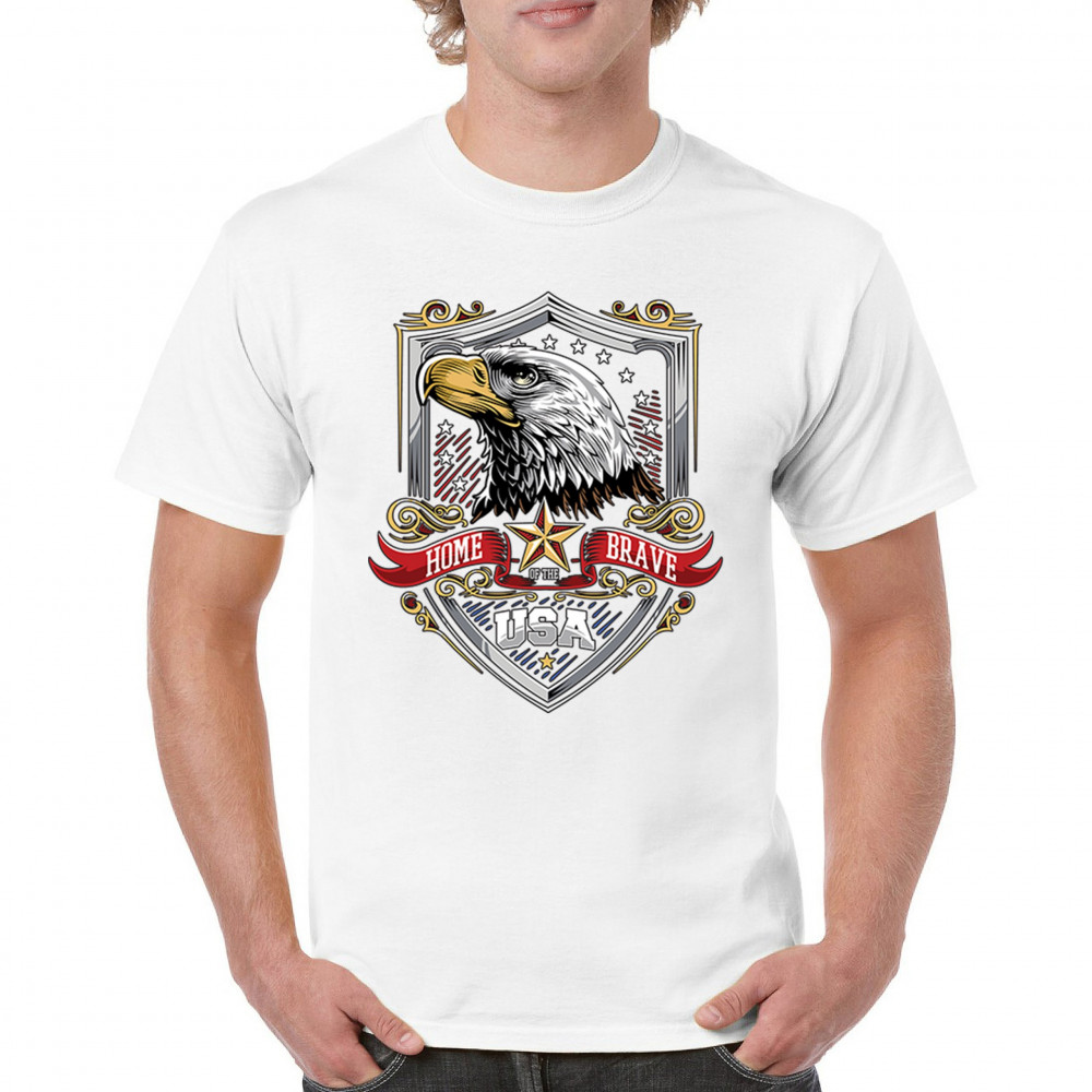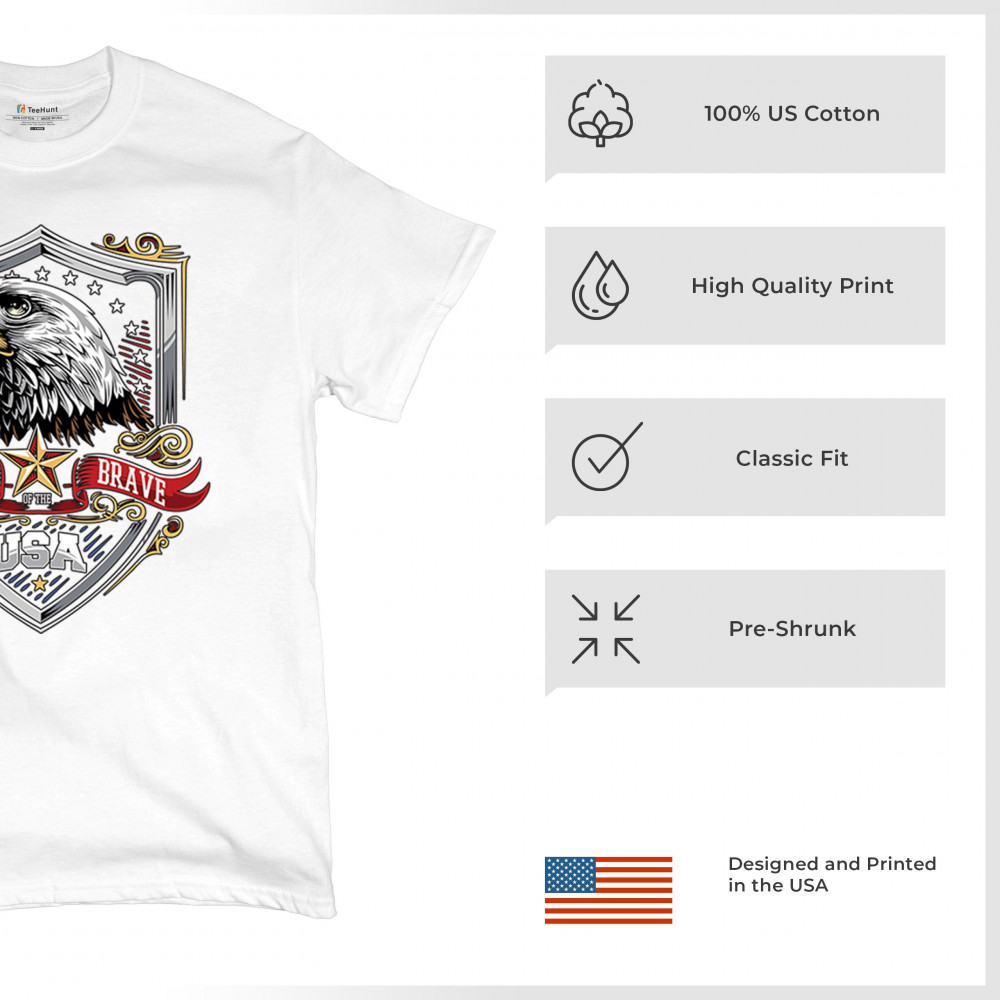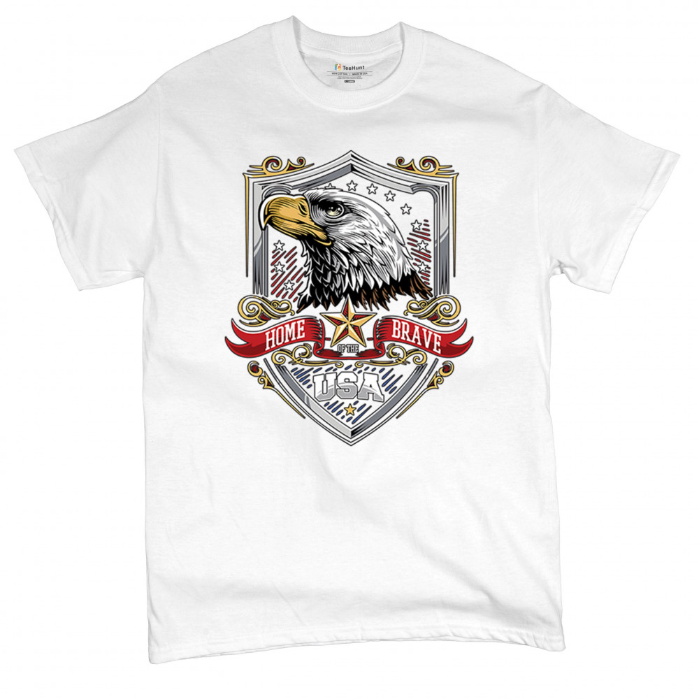 Honor American spirit with this patriotic eagle shield design shirt. Featuring a bold bald eagle emblem, stars and stripes shield, and red white blue accents, it’s perfect for Veteran’s Day, 4th of July, and military pride. A true American pride shirt for those who live by “home of the brave, land of the free.â€