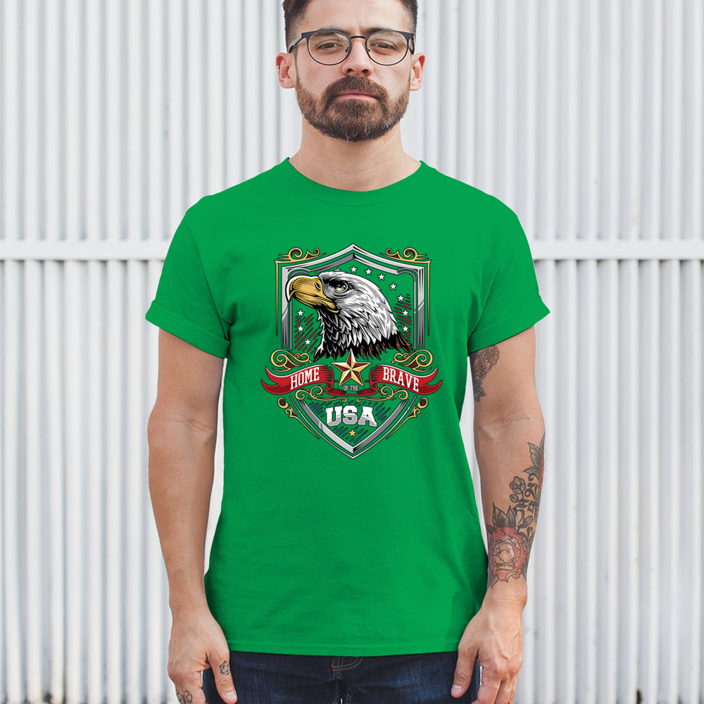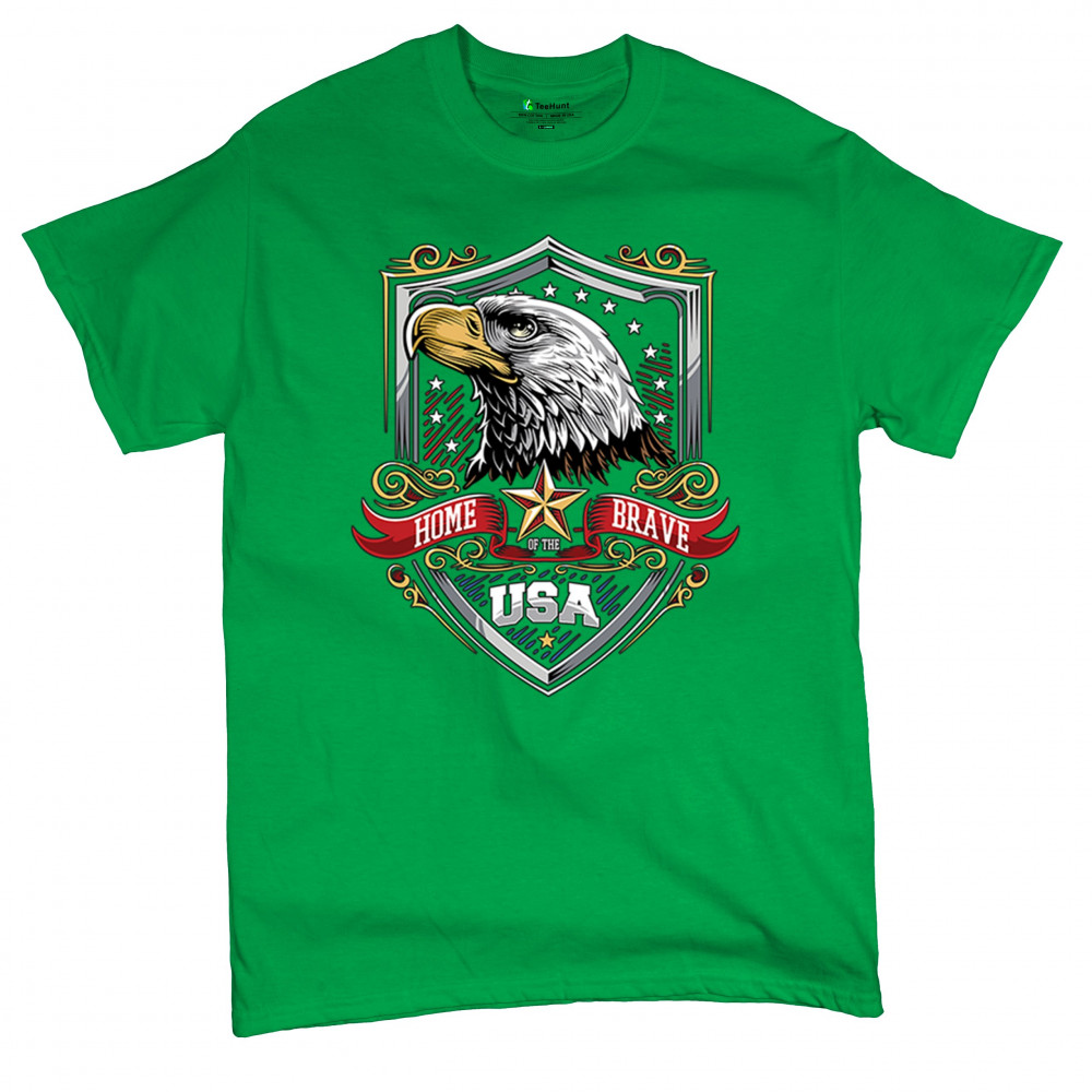 Honor American spirit with this patriotic eagle shield design shirt. Featuring a bold bald eagle emblem, stars and stripes shield, and red white blue accents, it’s perfect for Veteran’s Day, 4th of July, and military pride. A true American pride shirt for those who live by “home of the brave, land of the free.â€