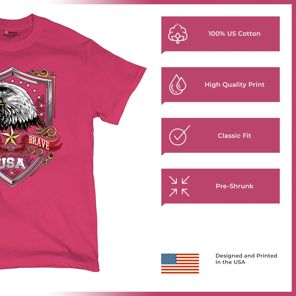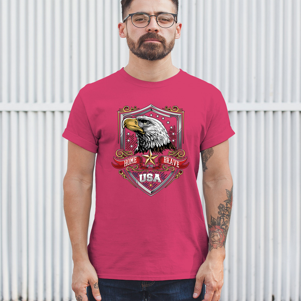 Honor American spirit with this patriotic eagle shield design shirt. Featuring a bold bald eagle emblem, stars and stripes shield, and red white blue accents, it’s perfect for Veteran’s Day, 4th of July, and military pride. A true American pride shirt for those who live by “home of the brave, land of the free.â€