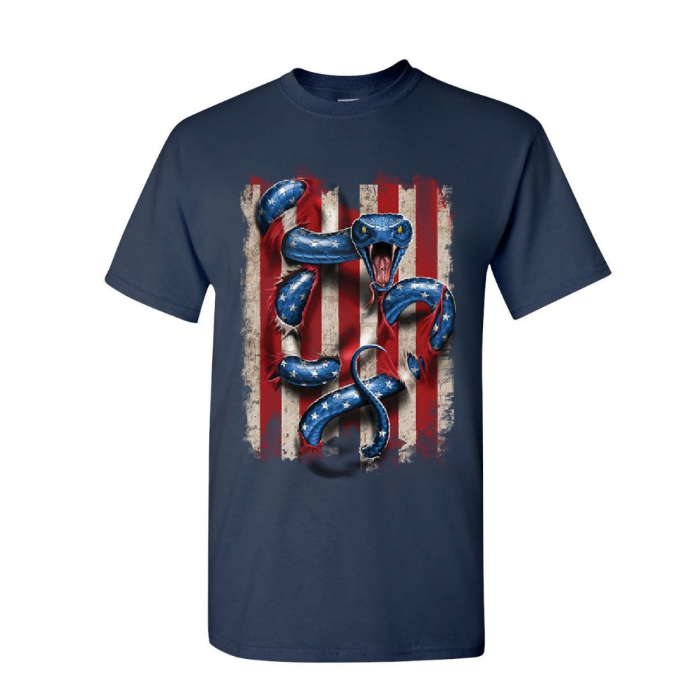 AMERICAN SERPENT t-shirt don't tread on me gadsden flag mens tee shirt navy blue