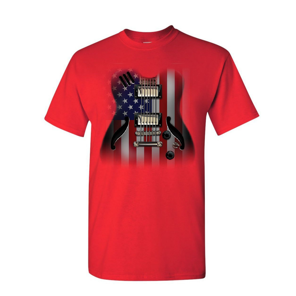 AMERICAN FLAG GUITAR t-shirt rock and roll music art 4th of july mens tee shirt red