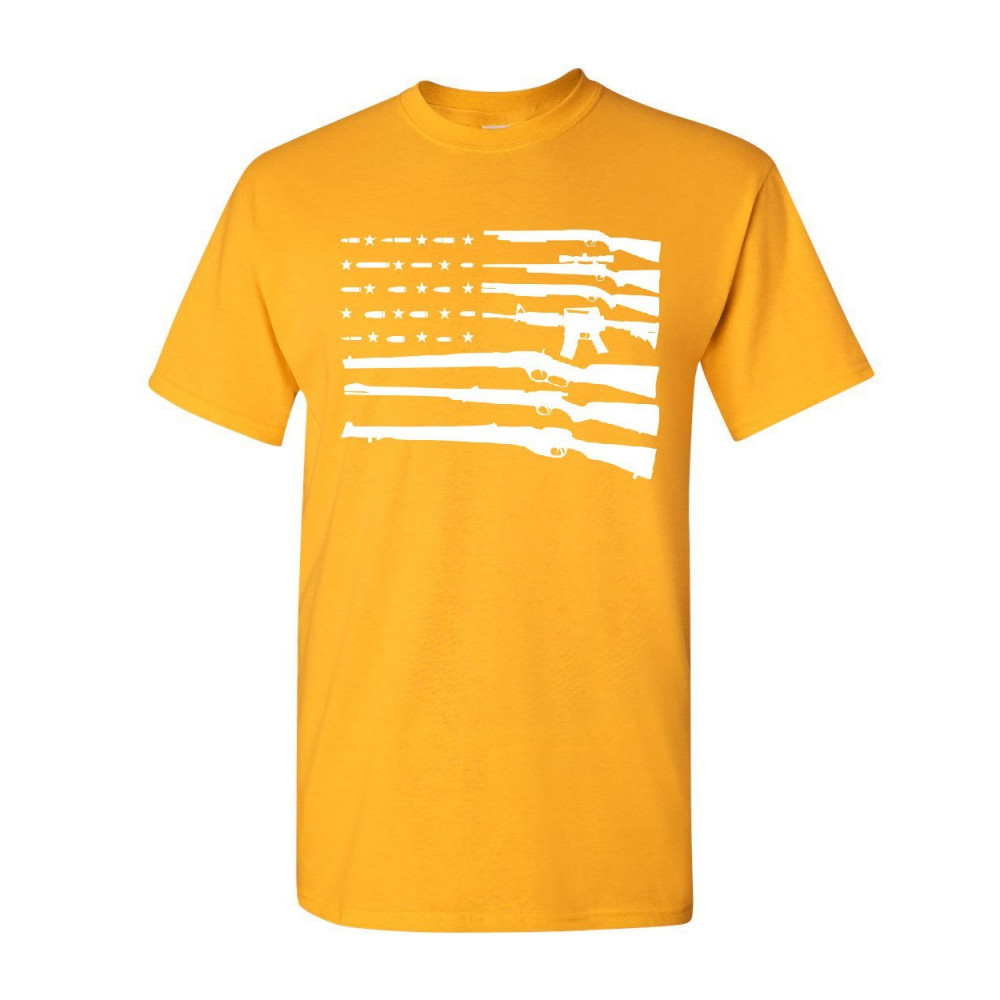 AMERICAN GUN FLAG american flag t-shirt 2nd amendment gun rights homeland ar15 tee yellow