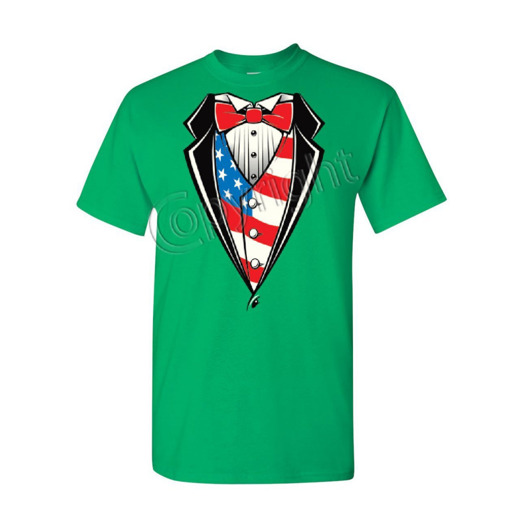 AMERICAN FLAG TUXEDO t-shirt funny 4th of july stars and stripes mens tee shirt green