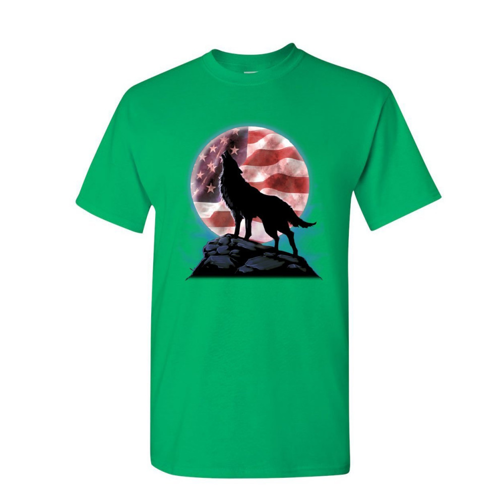 AMERICAN HOWLING WOLF t-shirt wildlife animal wolves wilderness mens tee shirt green