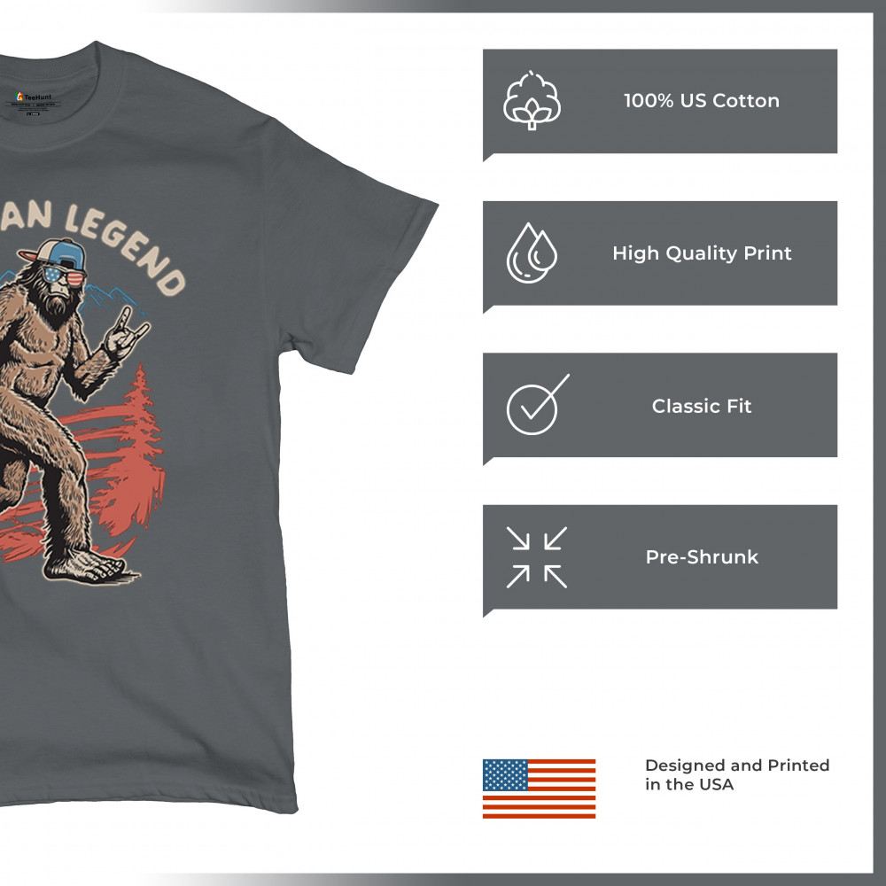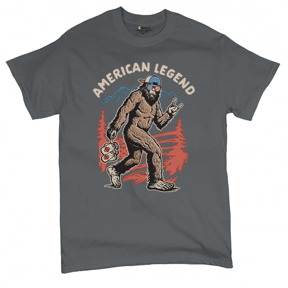 Funny Bigfoot design with patriotic flair—ideal for BBQs, beer lovers, campers, and cryptid fans who love to party in style!