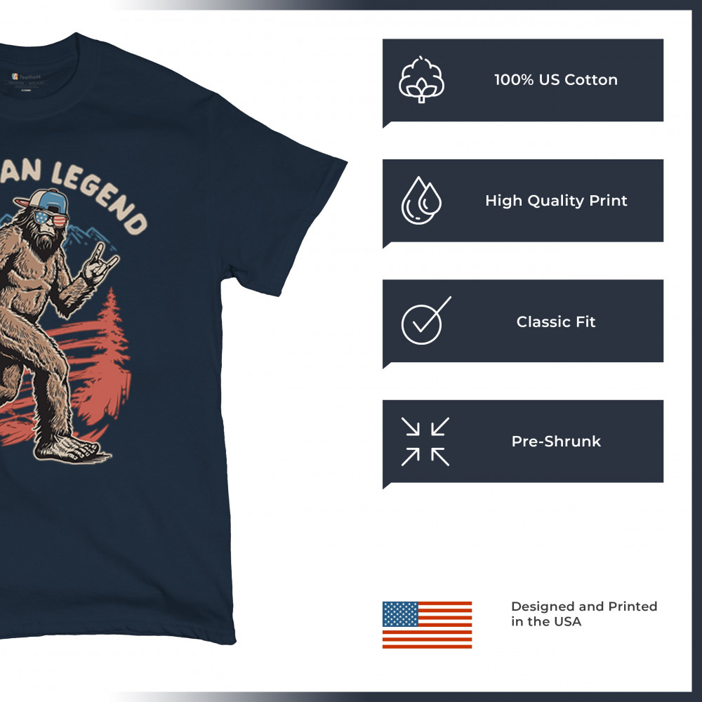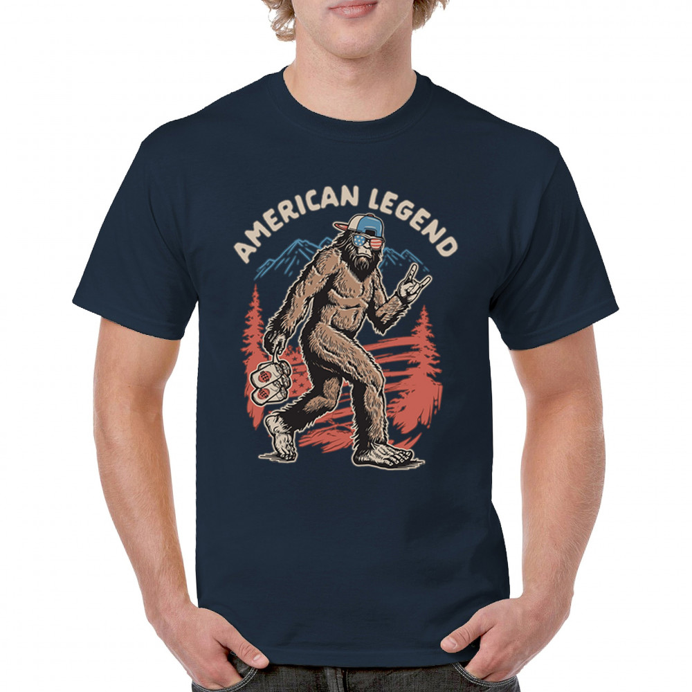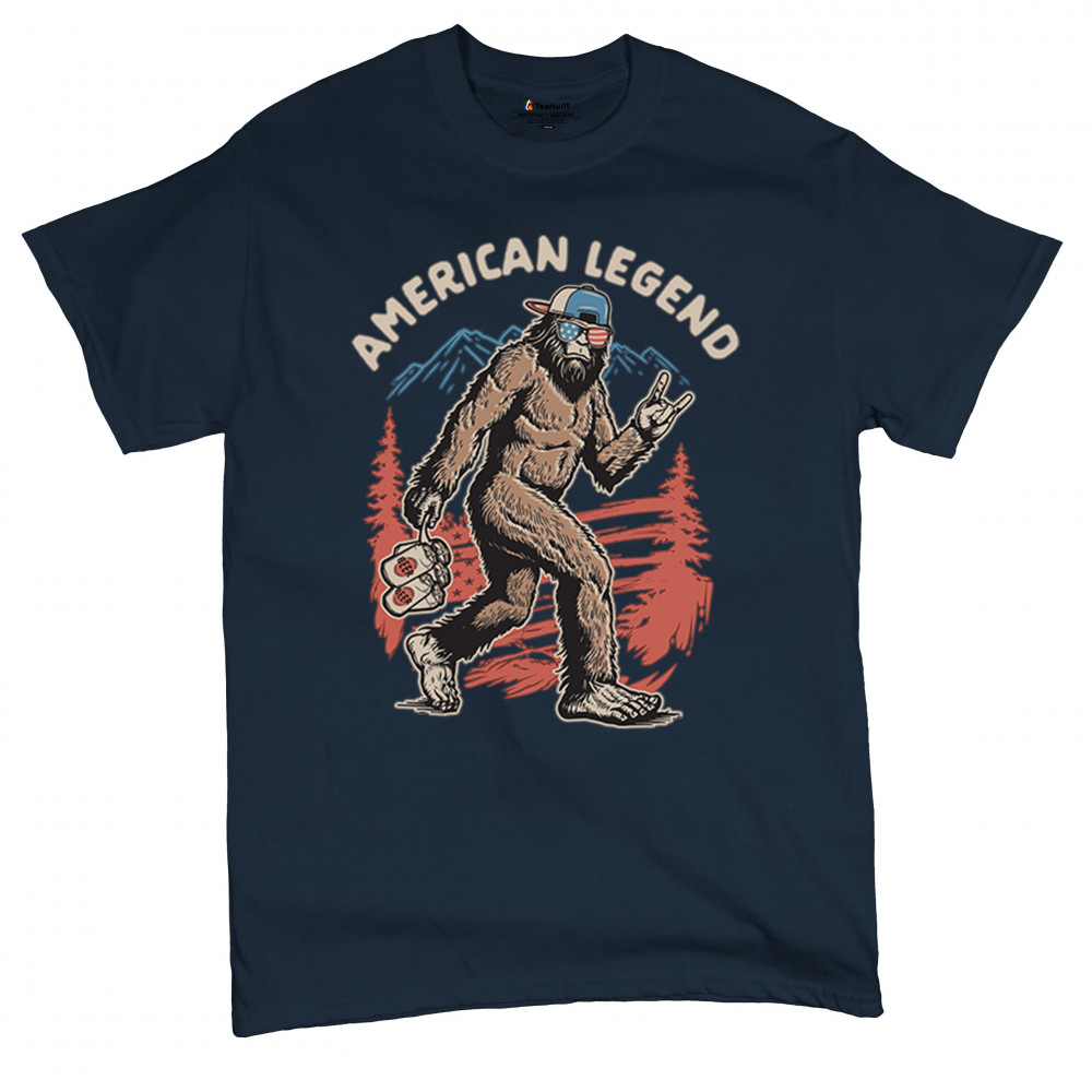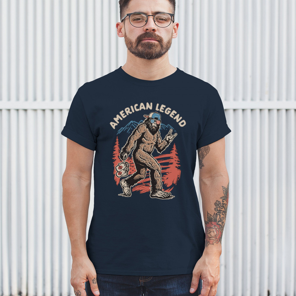Funny Bigfoot design with patriotic flair—ideal for BBQs, beer lovers, campers, and cryptid fans who love to party in style!