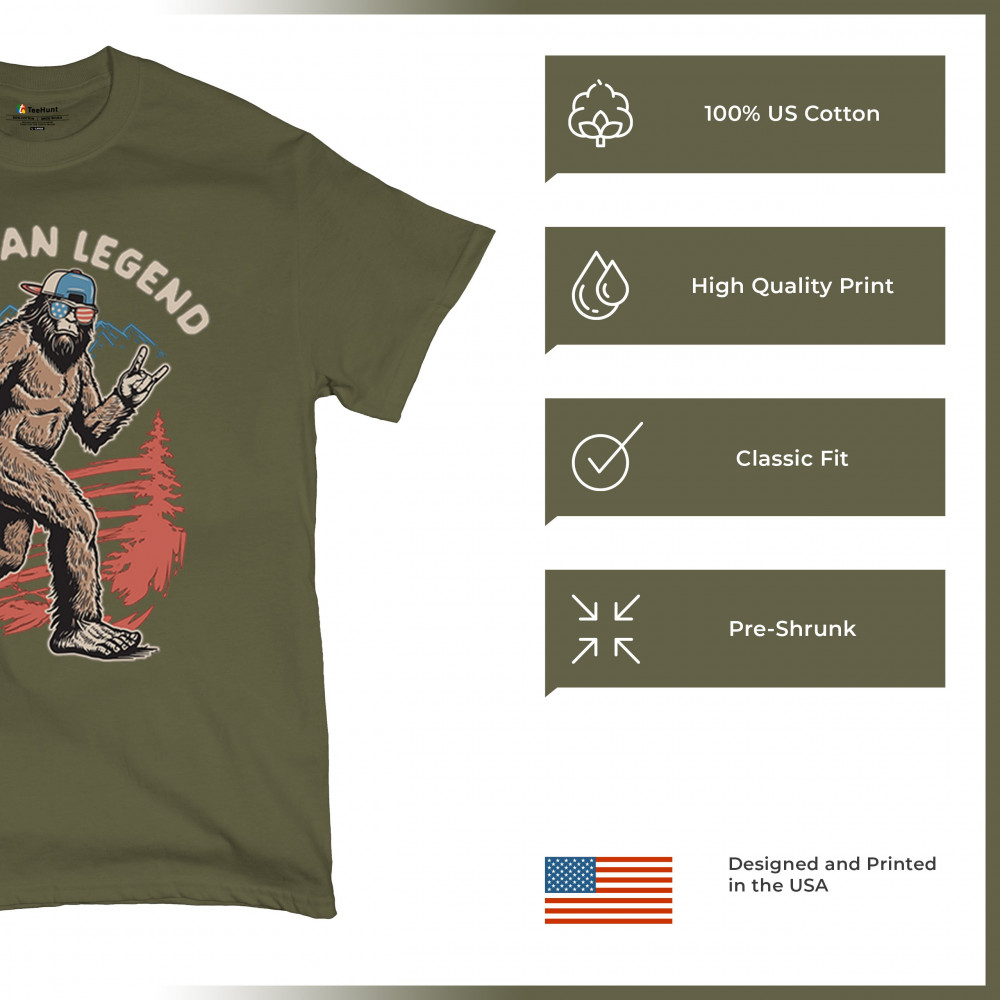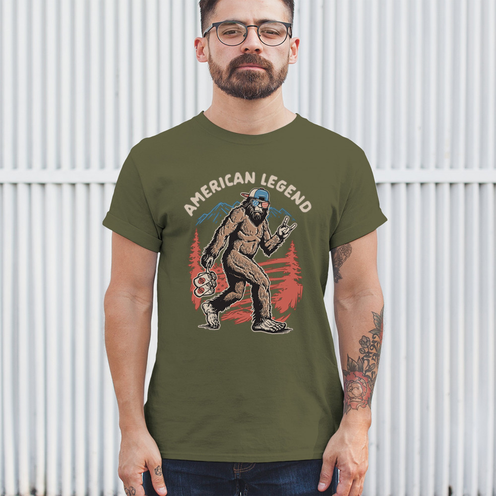 Bigfoot becomes the life of the patriotic party in this hilarious design featuring USA shades and a six-pack of beer. Perfect for barbecues, tailgates, and camping trips, it’s ideal for cryptid lovers, beer fans, and proud Americans. Great for Fourth of July celebrations or gifting the outdoorsman who has everything.