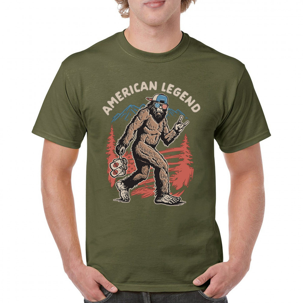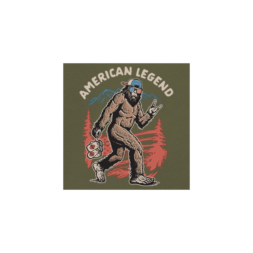 Funny Bigfoot design with patriotic flair—ideal for BBQs, beer lovers, campers, and cryptid fans who love to party in style!